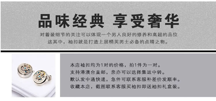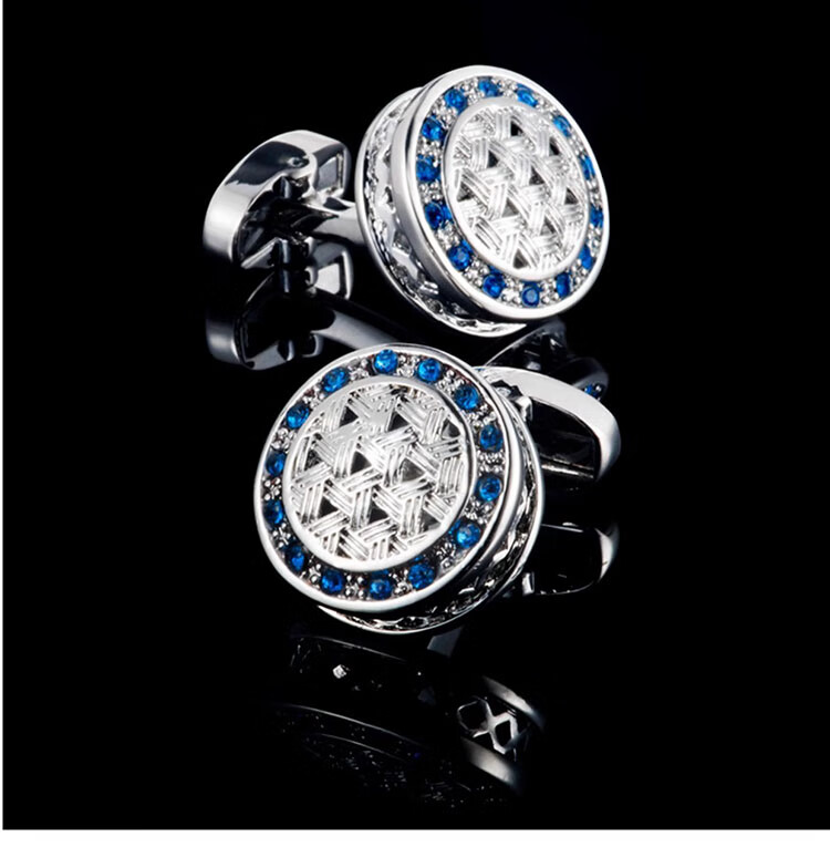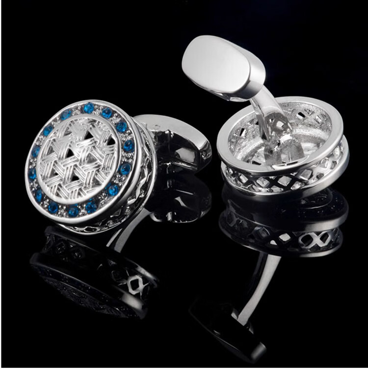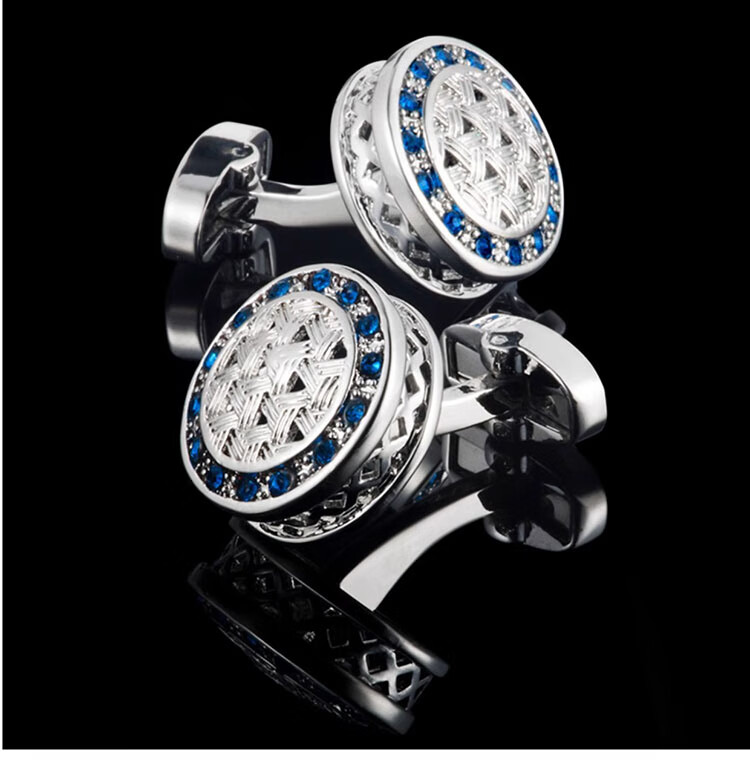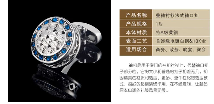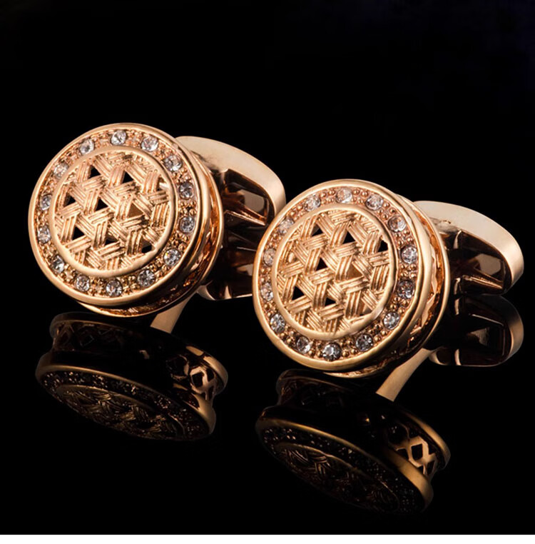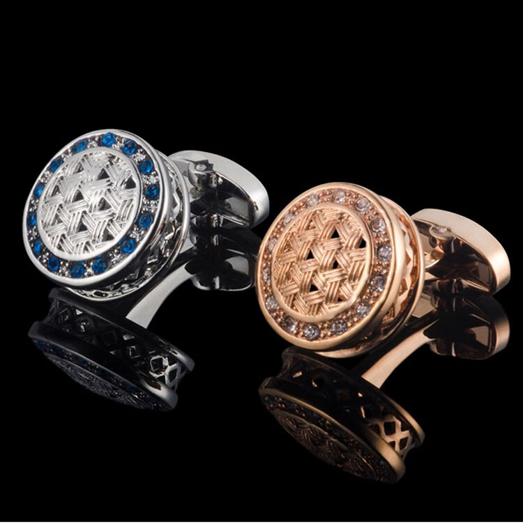 NOSSKISS欧式复古袖扣优雅绅士袖钉钢色镶蓝钻男法式衬衫袖口生日礼物送礼 玫瑰金色 φ20mm