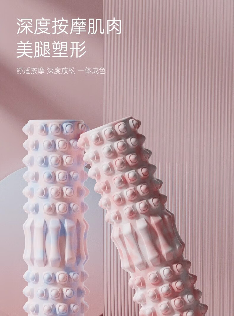 TLXT泡沫轴滚背神器肌肉放松筋膜棒腿部滚轮狼牙棒瘦小腿按摩棒瑜伽柱 马卡龙-桃桃粉 【30cm泡沫轴】