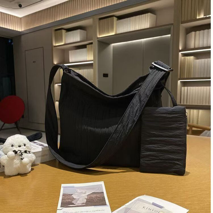 Meibaohui beautiful bag new fashion canvas bag large capacity tote versatile shoulder crossbody bag simple commuting black