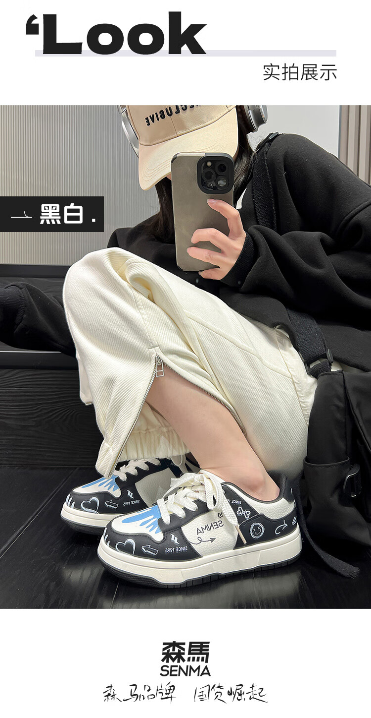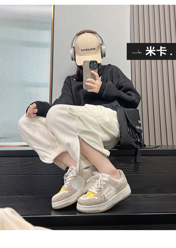森馬女鞋秋季2025新款透气小众设计感百搭板鞋休闲运动厚底增高小白鞋 米卡 35