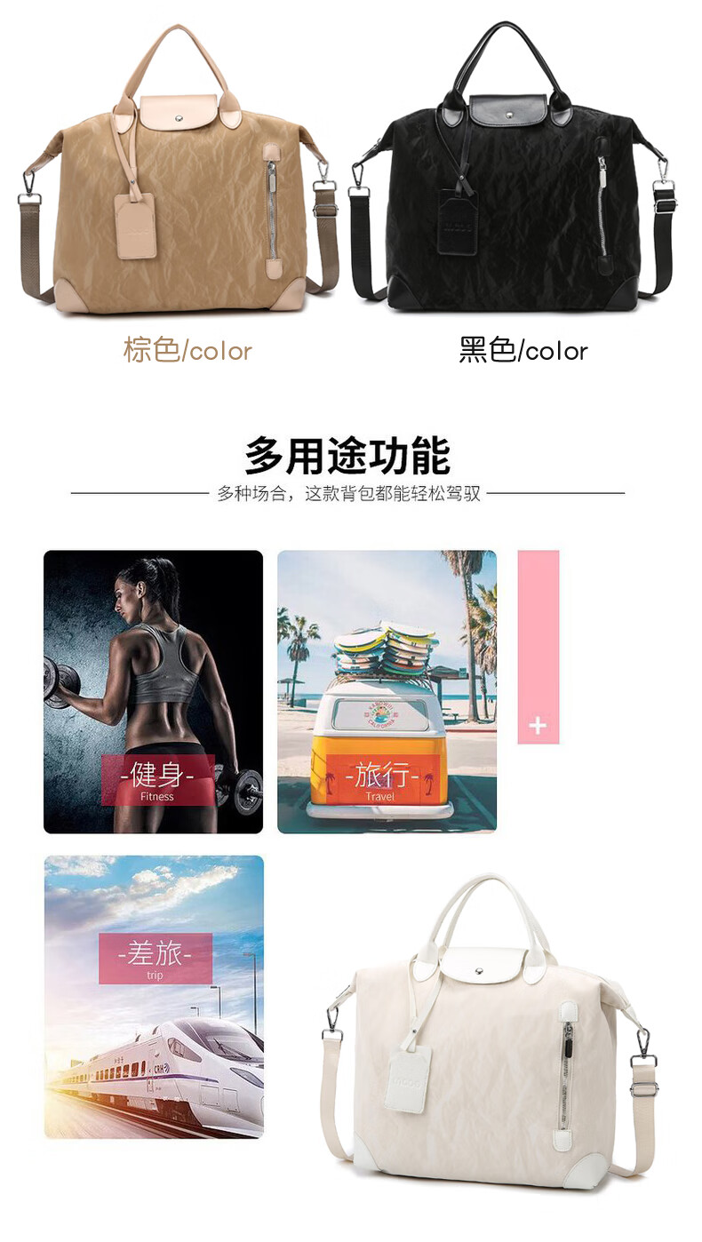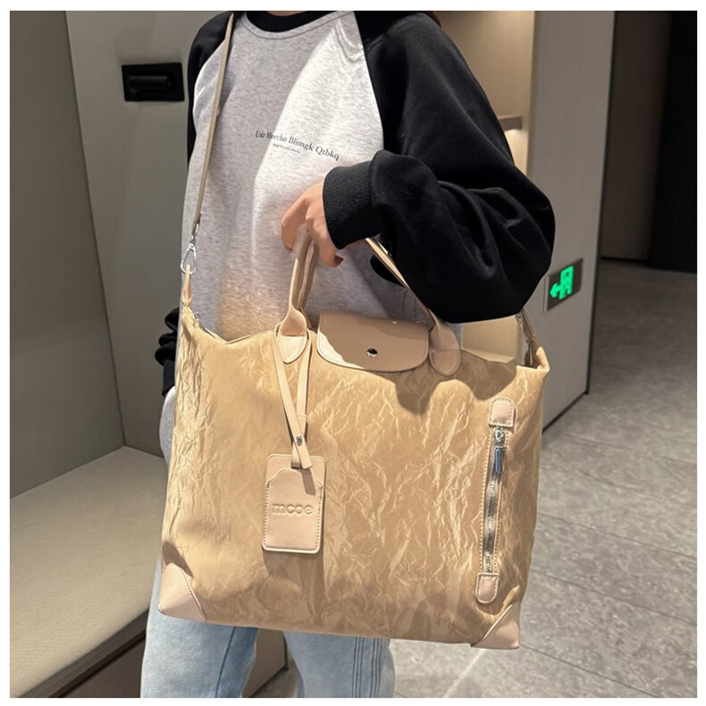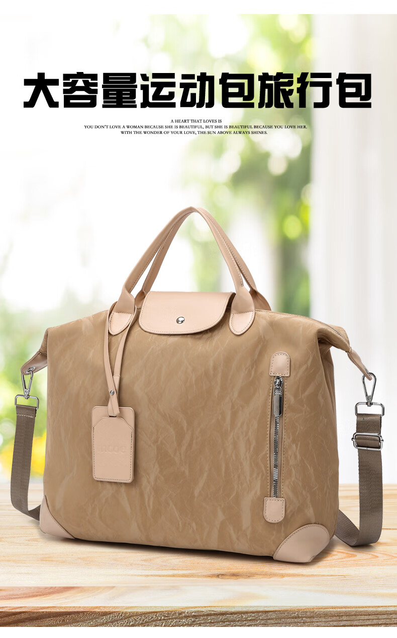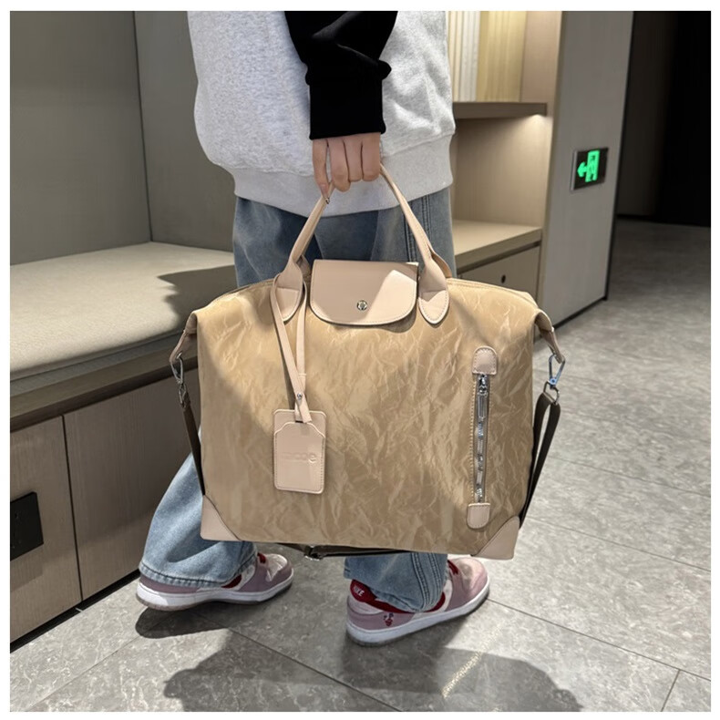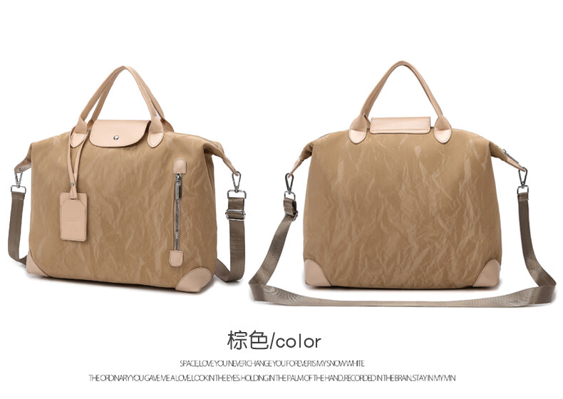 新款大容量短途旅行包简约时尚百搭男女健身包行李包旅行手提单肩 棕色 均码