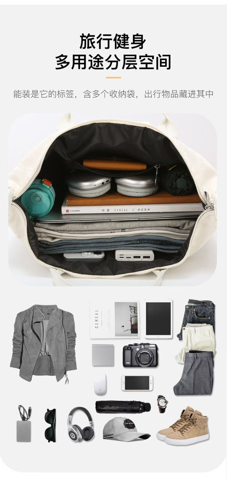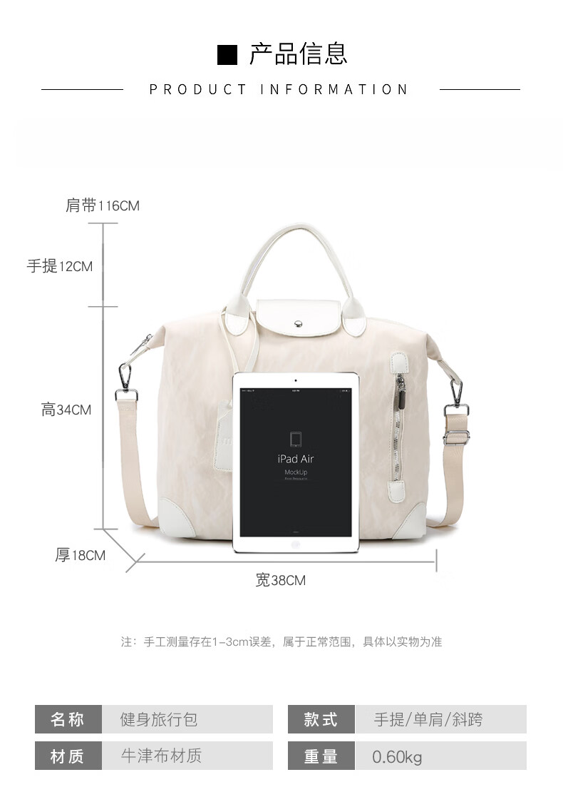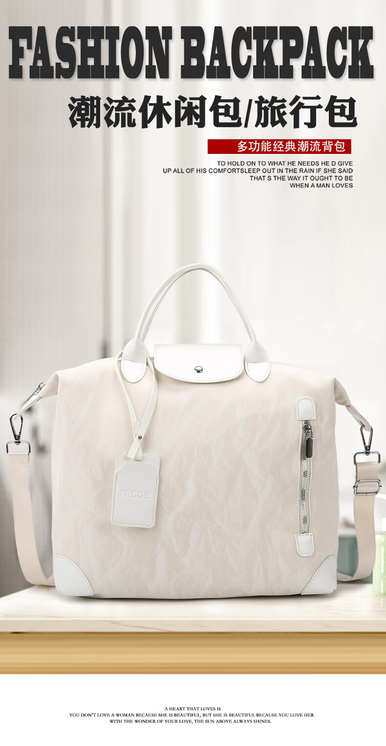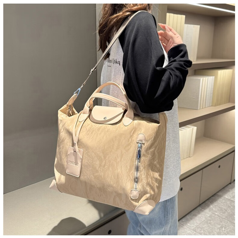 新款大容量短途旅行包简约时尚百搭男女健身包行李包旅行手提单肩 棕色 均码