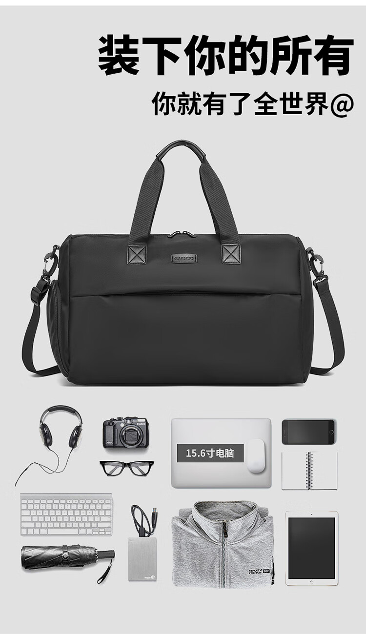 新款旅行包男干湿分离运动健身包短途出差旅游手提女行李包单肩包 黑色 均码