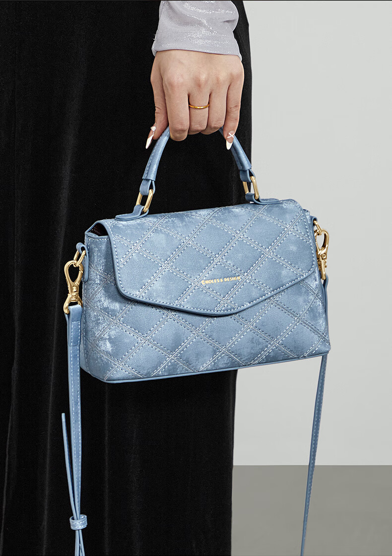 蔻一锦感系列包包新款女斜挎包复古百搭小众设计手提单肩包 冰丝水蓝
