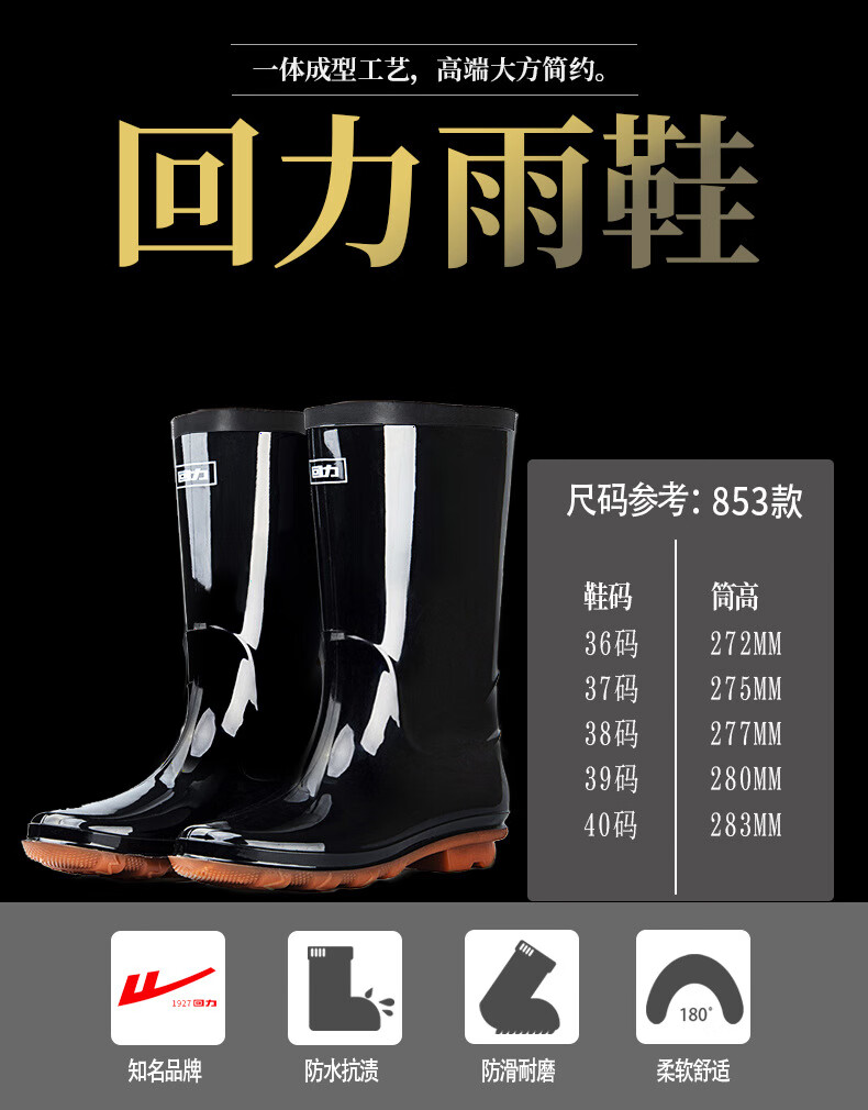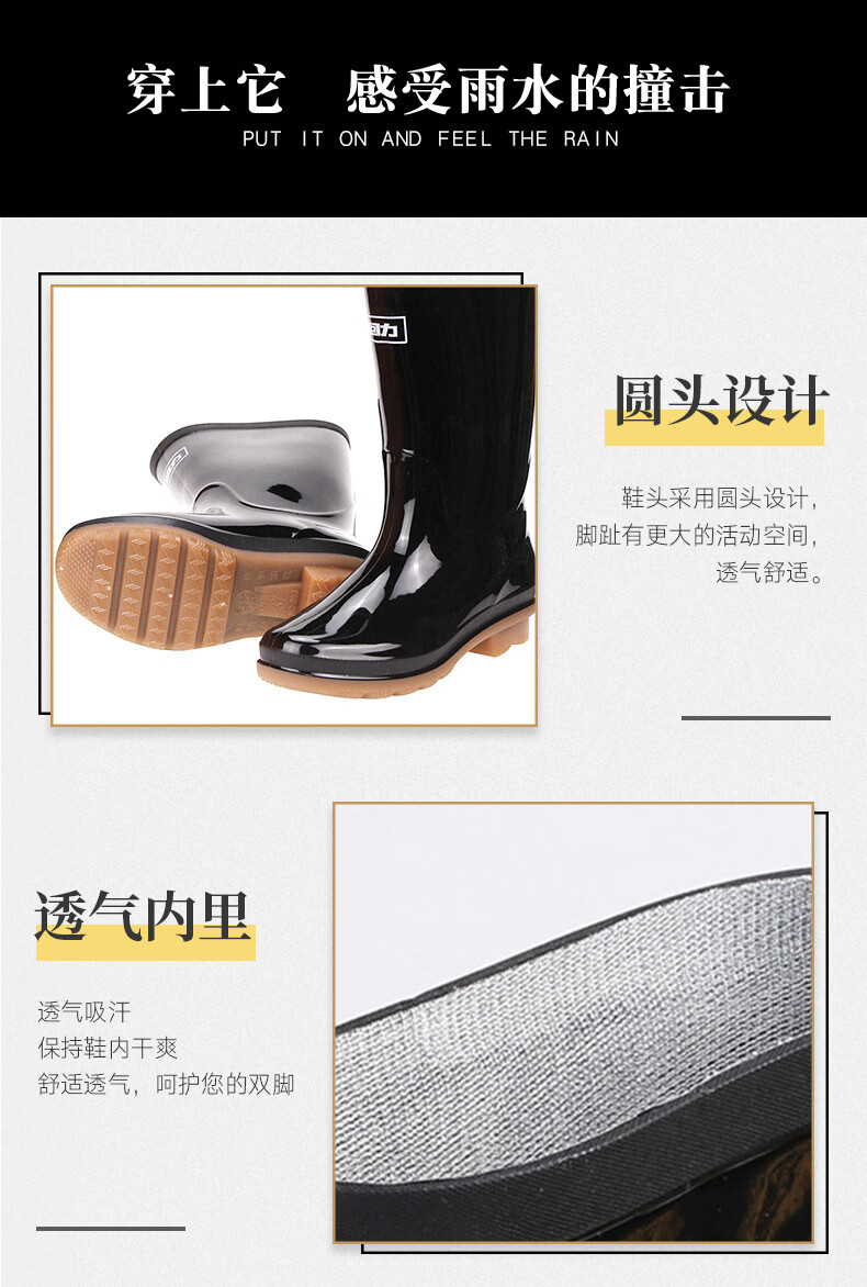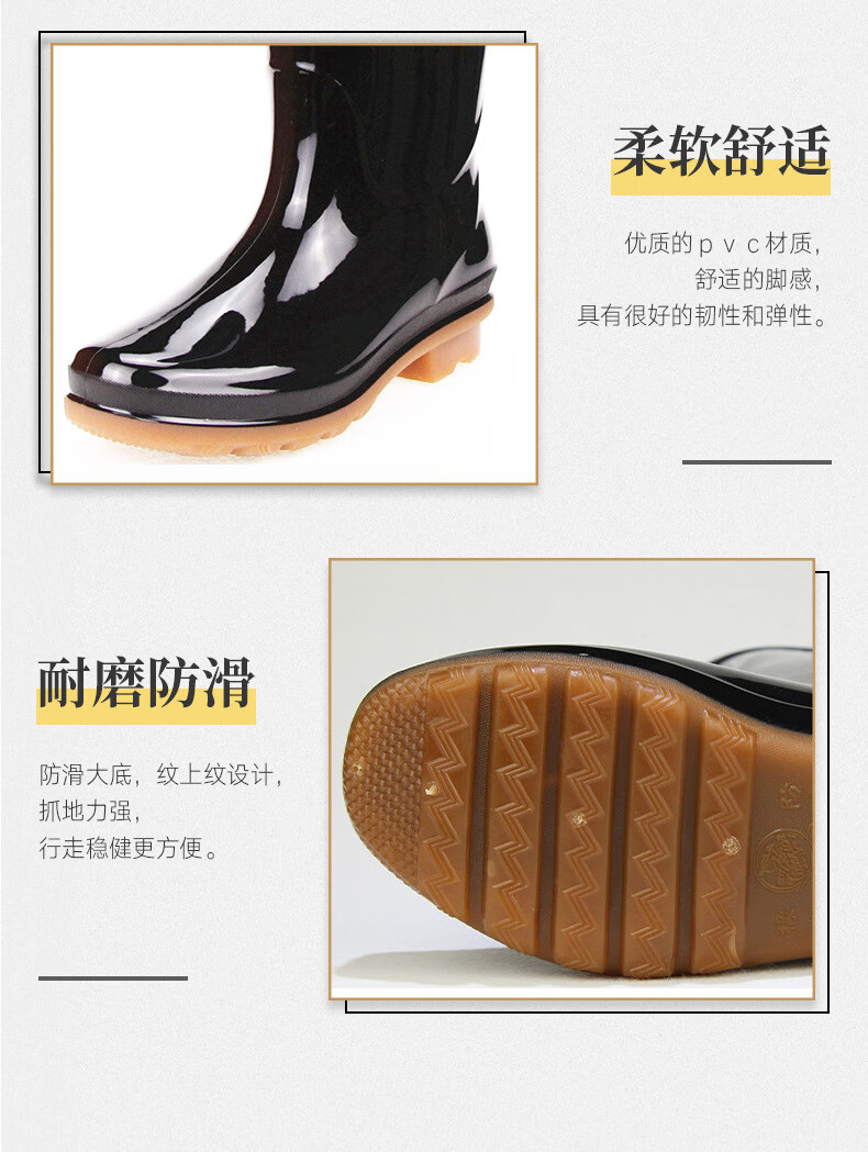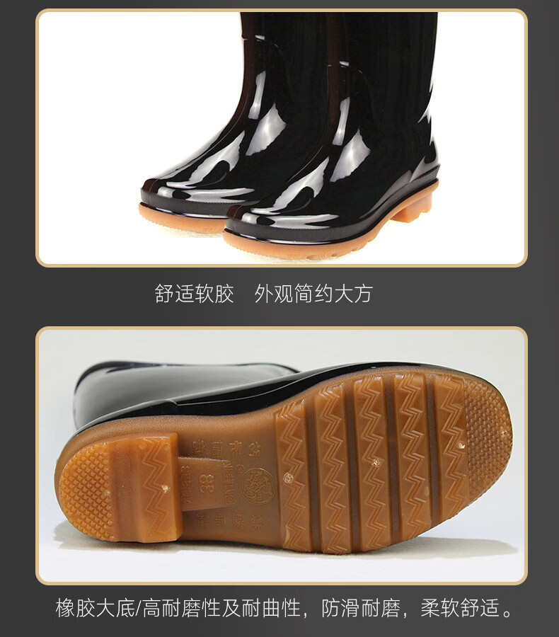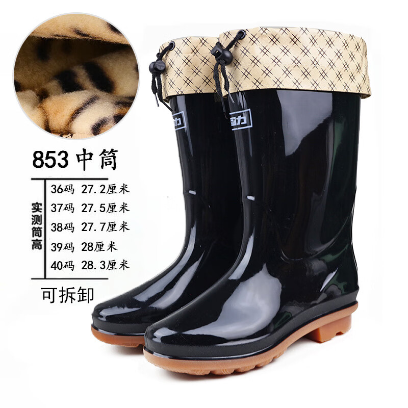 Pull-back rain boots for women 853 women's mid-calf low-heeled rain boots with tendon soles waterproof, non-slip and wear-resistant work protective rain boots 853 mid-calf single layer 36