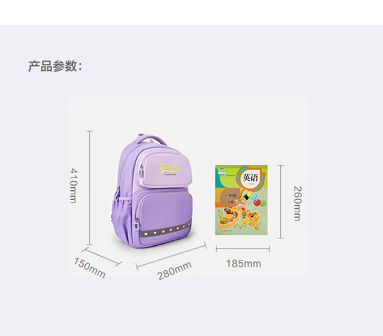 巴拉巴拉儿童书包男女童双肩包护脊减负舒适撞色字母绣花时尚学院 紫色调00377 130cm