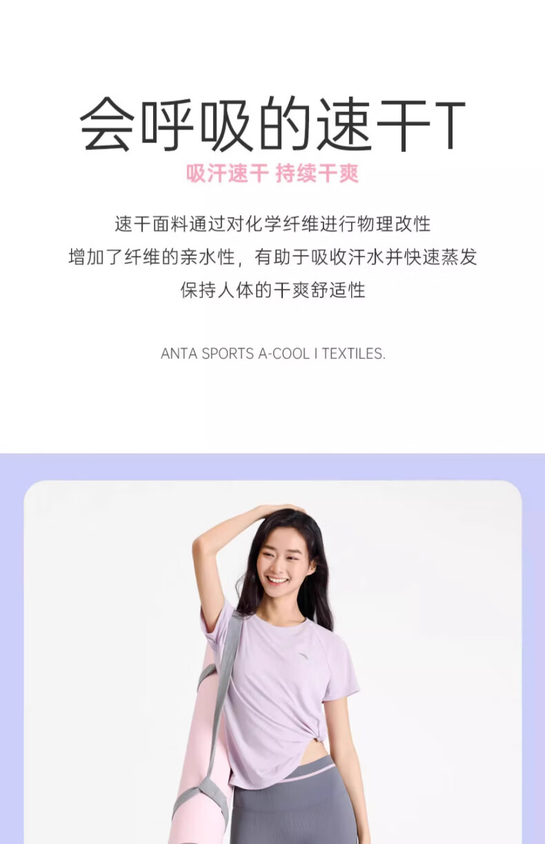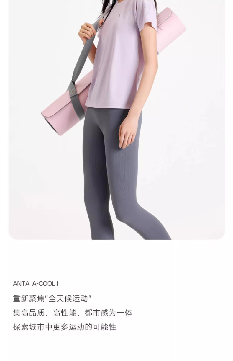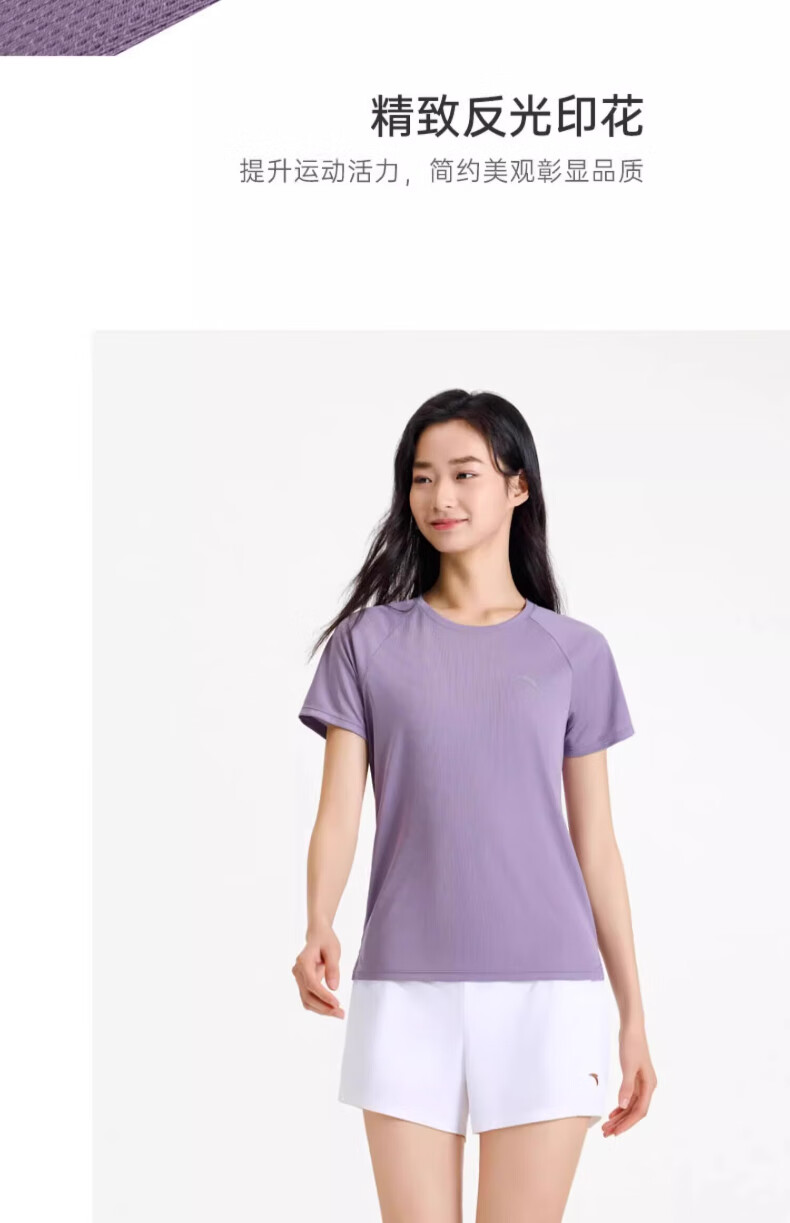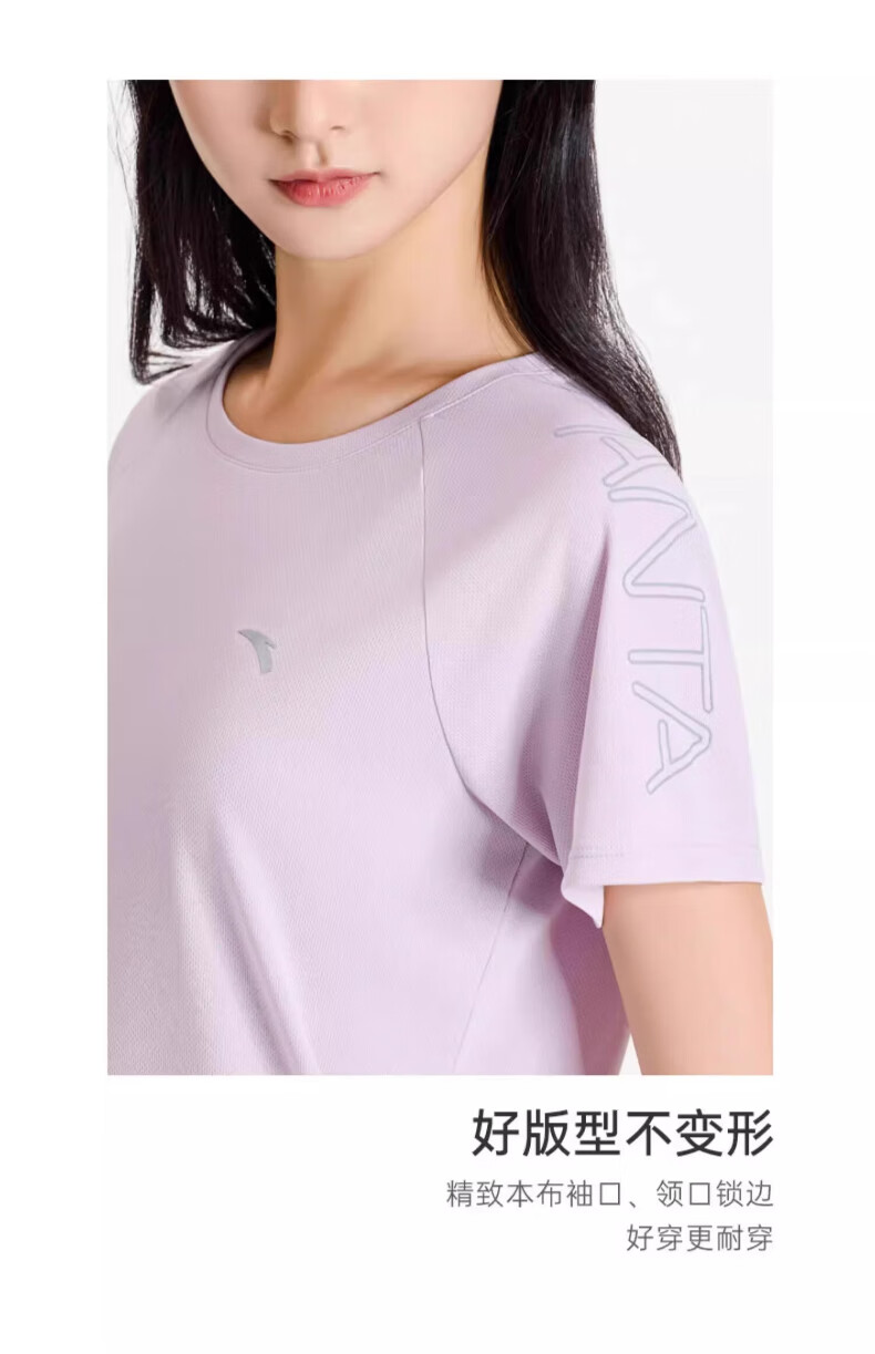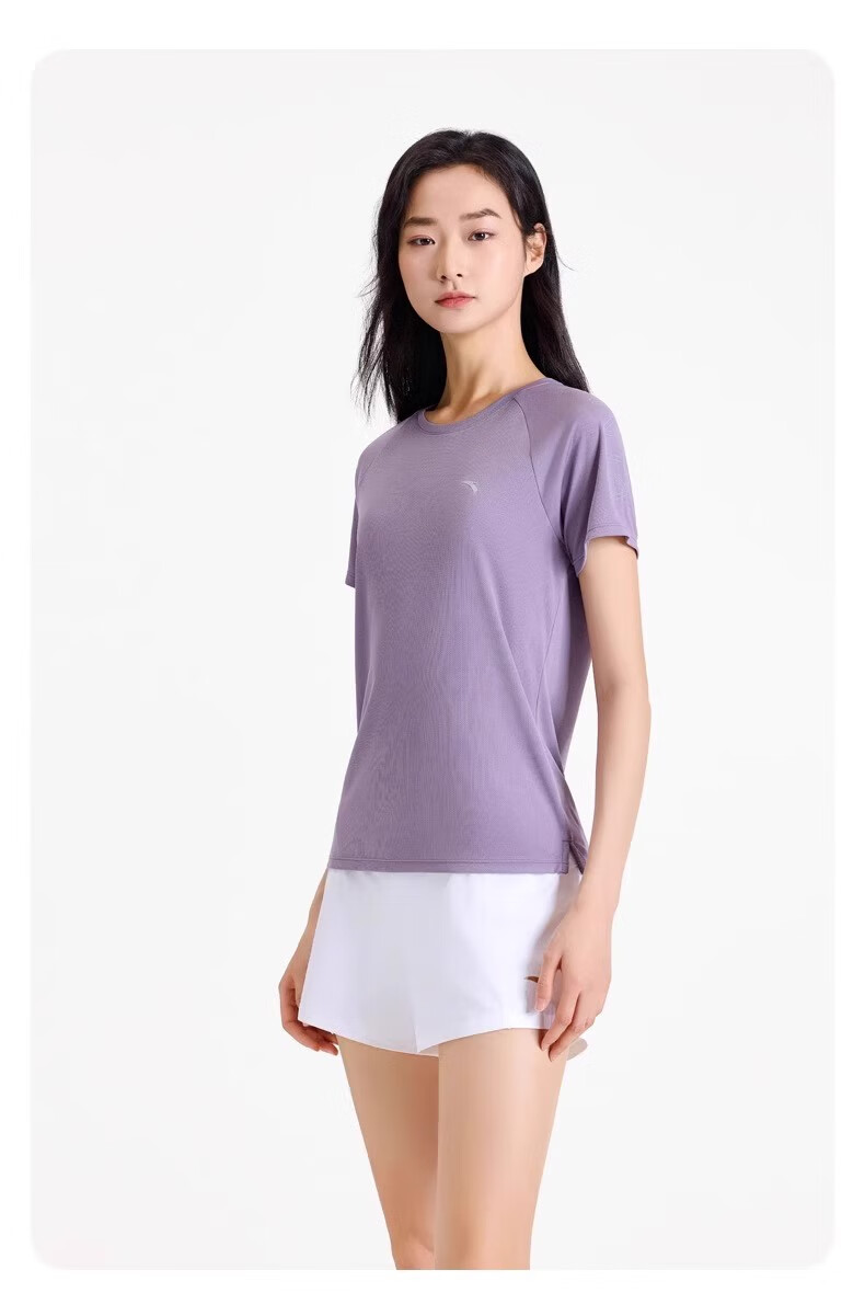 安踏休闲运动服套装女2025春夏季薄款冰丝速干短袖T恤束脚针织长裤 7121-1罗衣紫【套装】 M