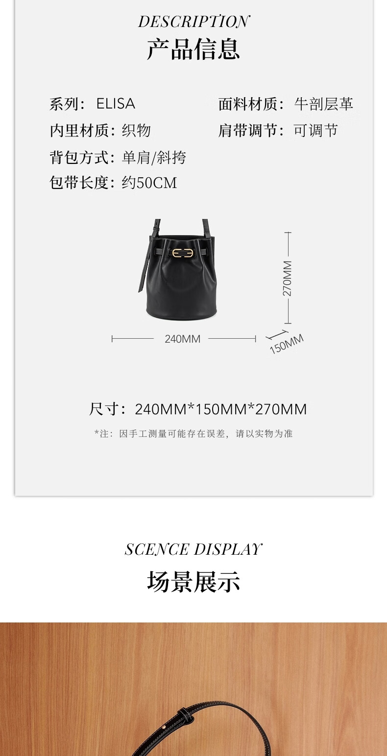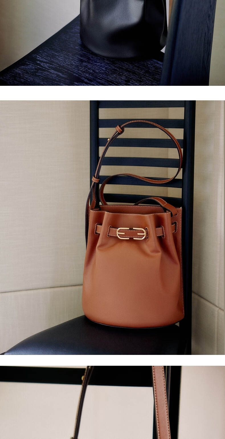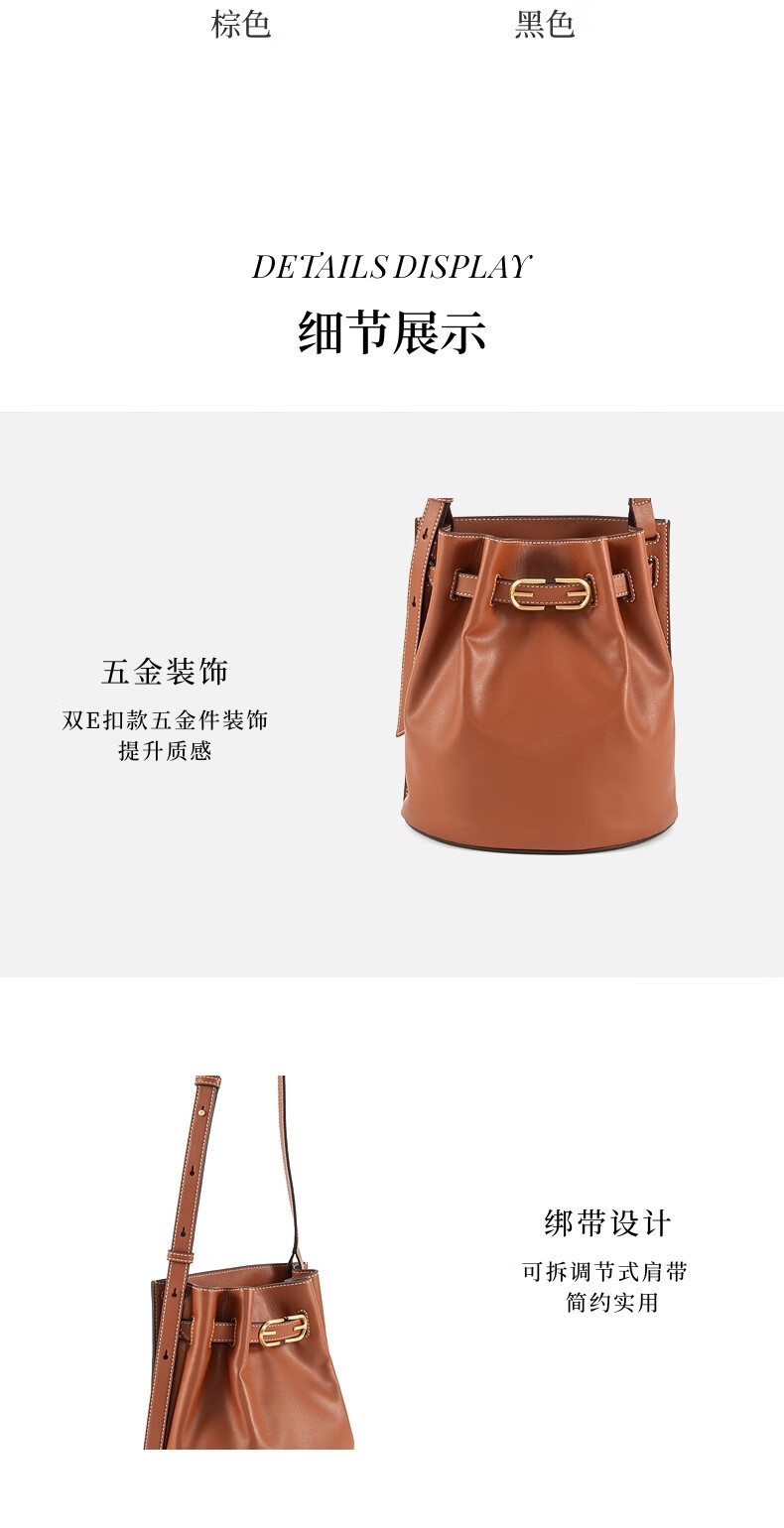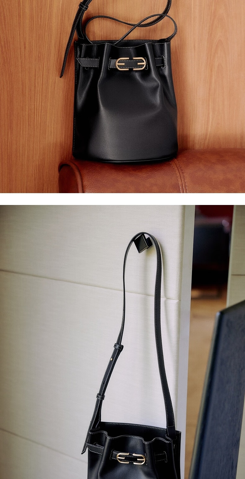 SAM EDELMAN山姆山姆爱德曼明星同款抽绳牛皮单肩斜挎包水桶包女Elisa-XJ 黑色