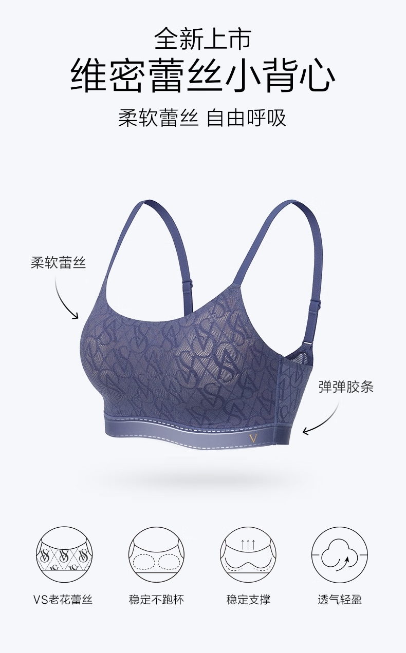 Pièces Victoria's Secret (Victoria's Secret) | Victoria's Secret classique LOGO presbyte dentelle dos-coupe gilet style soutien-gorge pour femmes mince été 54A2 classique noir-6630 XS
