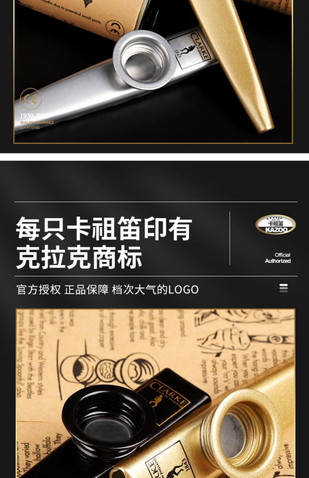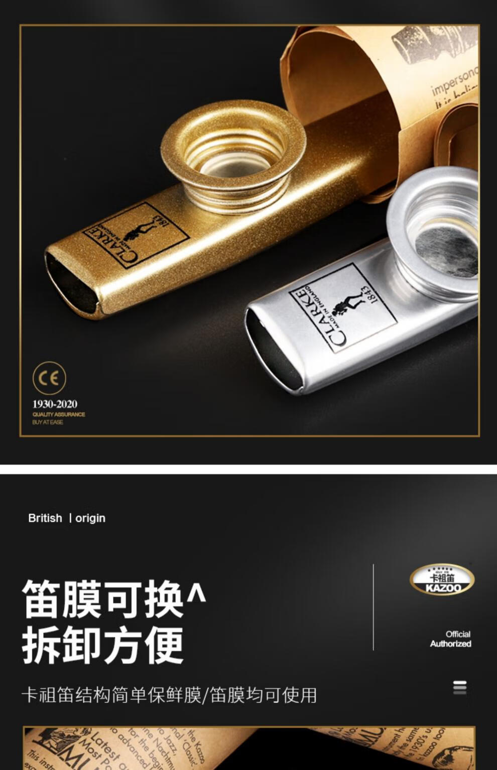 CLARKE British Clarke kazoo guitare ukulélé instrument d'accompagnement flûte en métal modèle de trompette paint_gold amélioré (11 pièces) avec