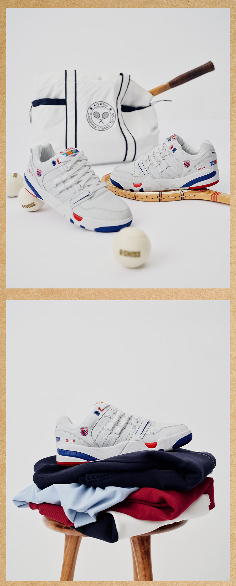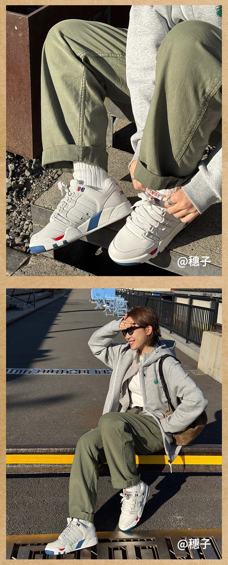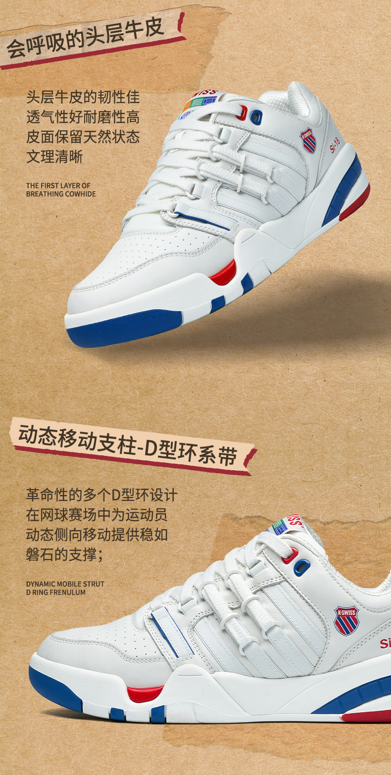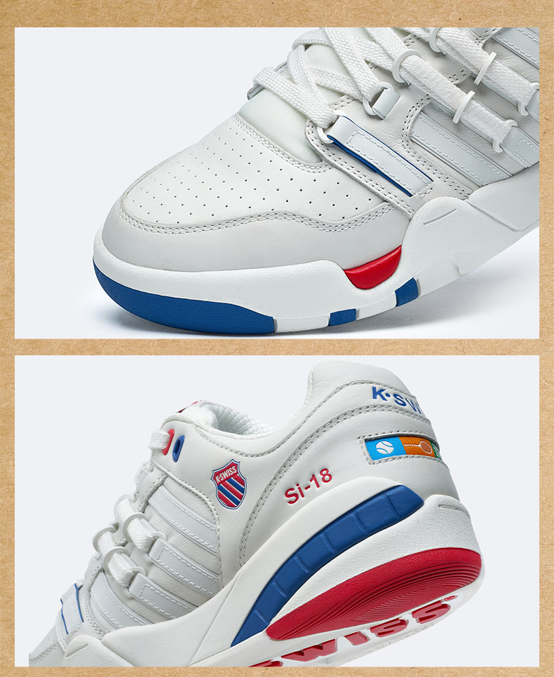 K SWISS show same style sports shoes for men and women couples shoes retro genuine leather low-cut sneakers Si-18 slam shoes 8381 9275-114 white/blue/red/grey same style for men and women 39 women's size is too small, it is recommended to take a larger size