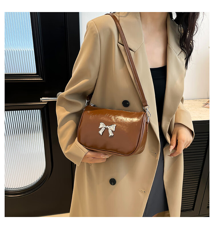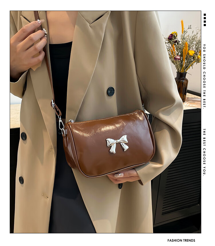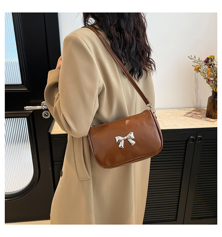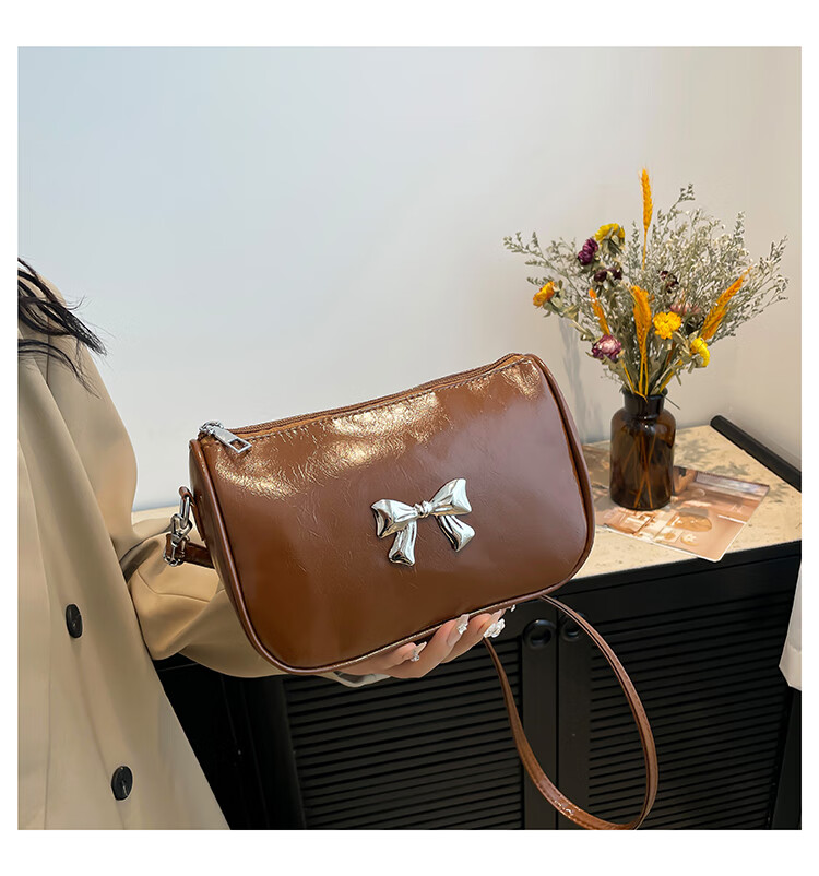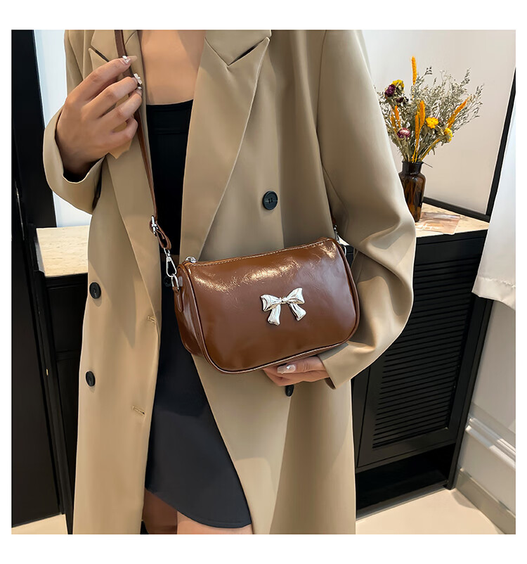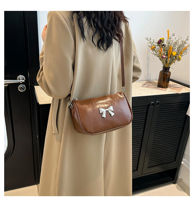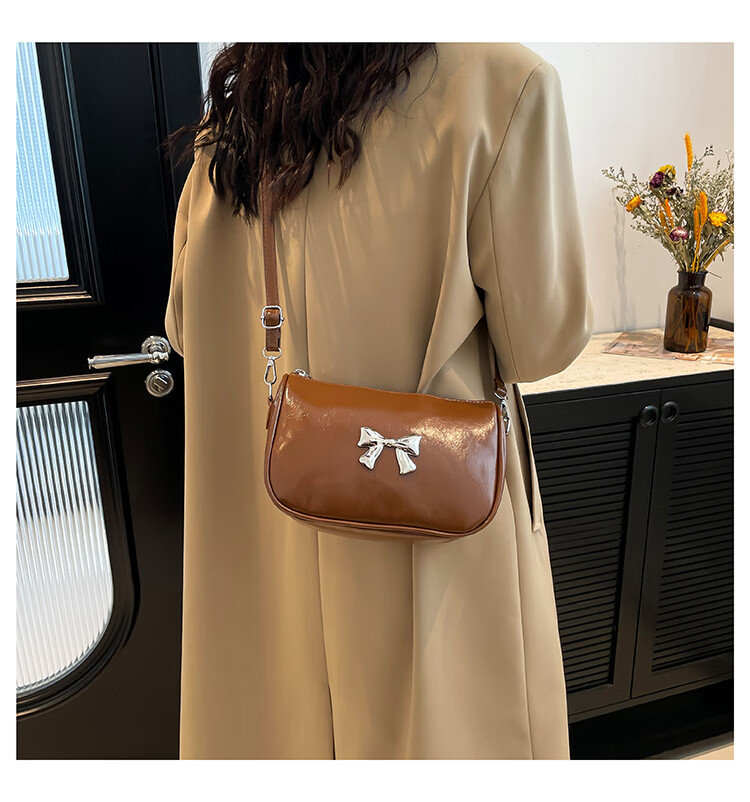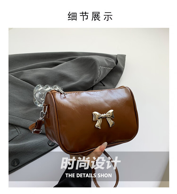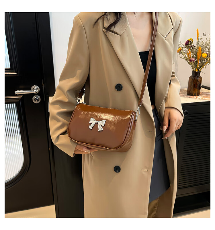 包包女式2025新款斜挎包小众设计高级感时尚爆款单肩蝴蝶结小方包 棕色
