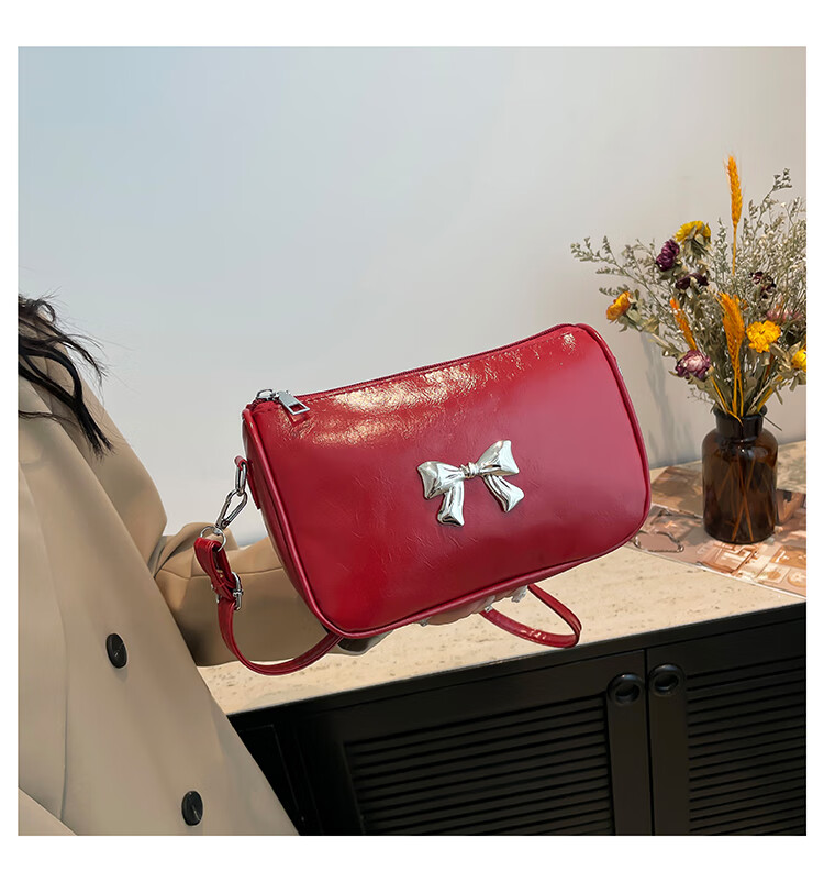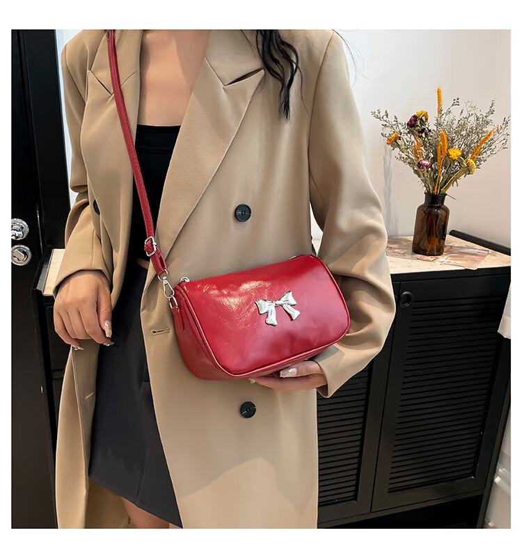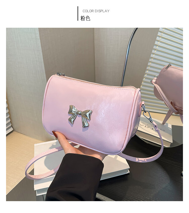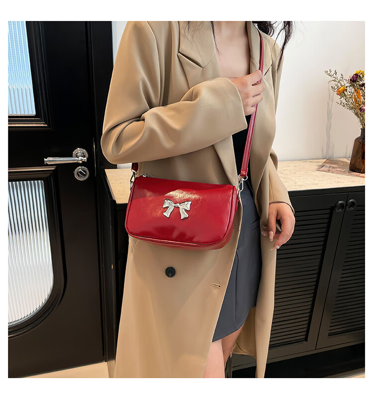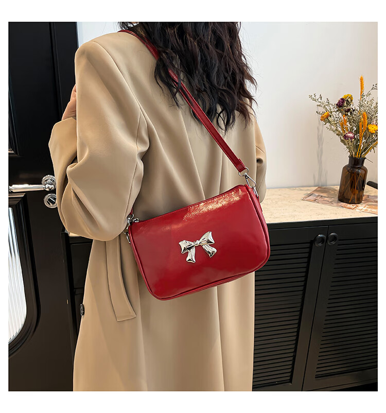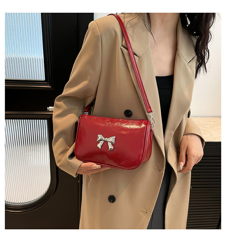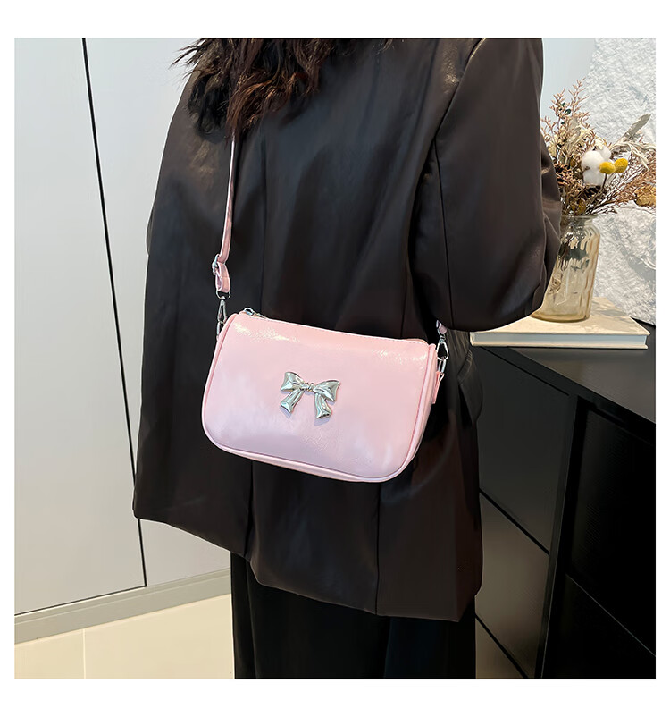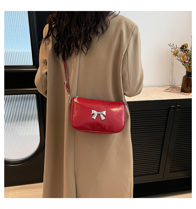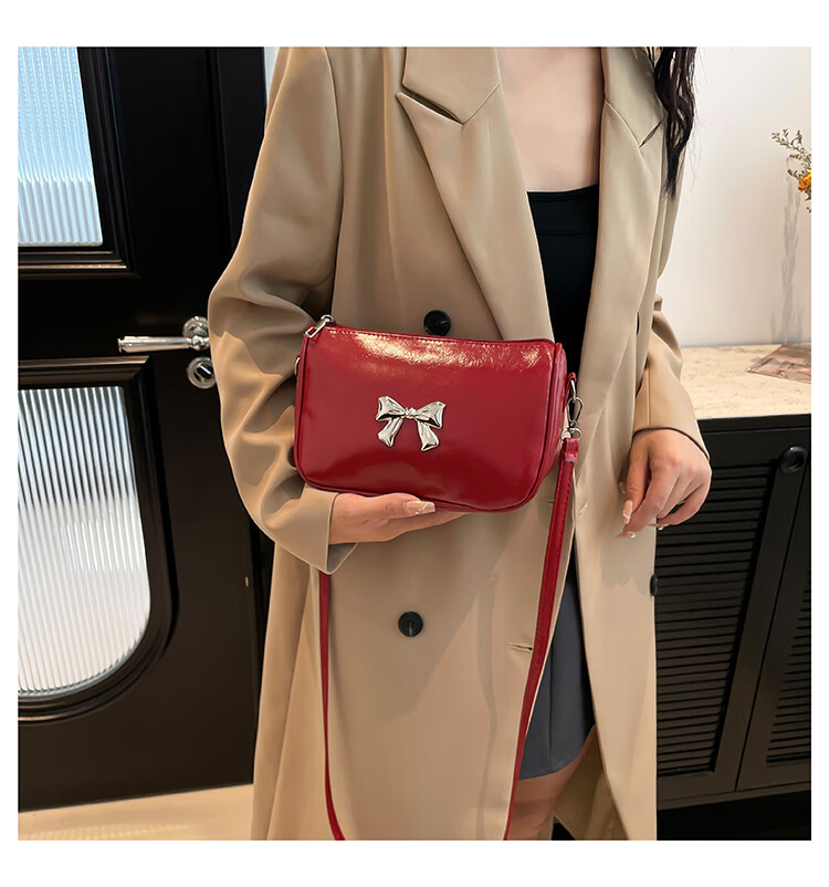 包包女式2025新款斜挎包小众设计高级感时尚爆款单肩蝴蝶结小方包 棕色