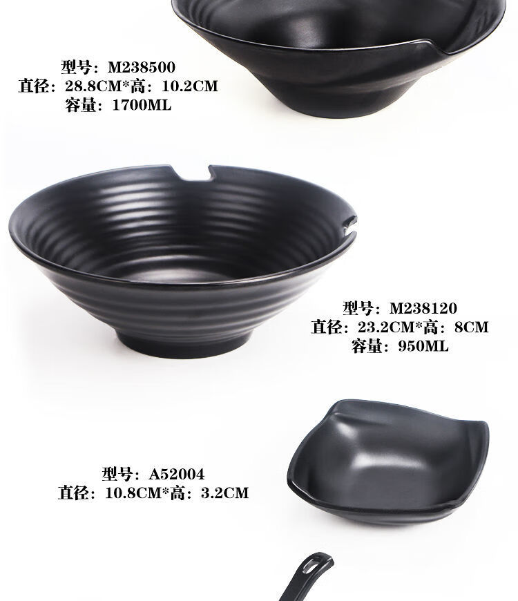 恩寿溯日式牛肉拉面碗商用黑色烤肉拌饭碗汤碗面碗塑料碗仿瓷麻辣烫大碗 W14088寸:600ml.