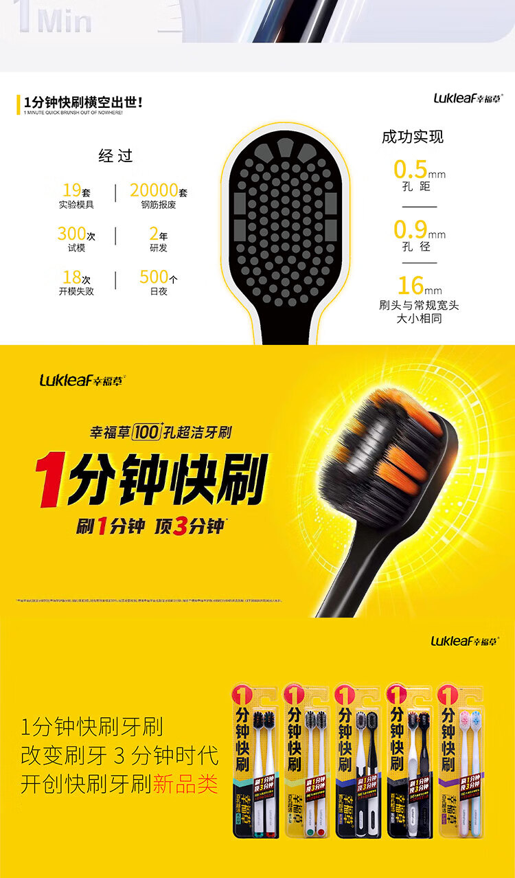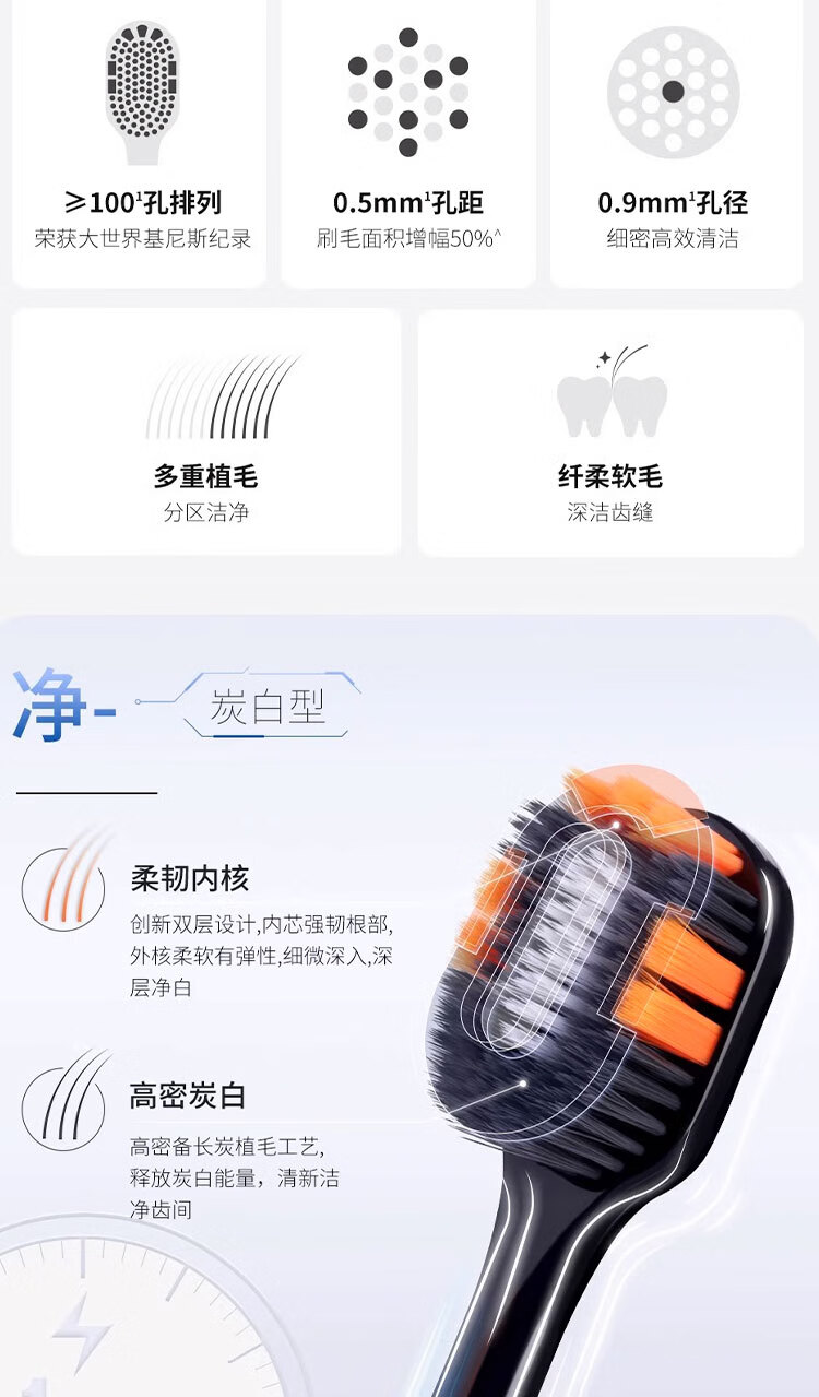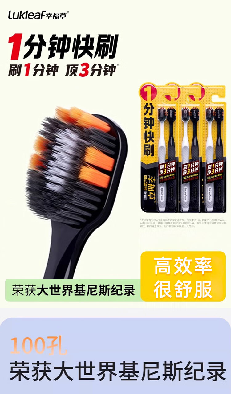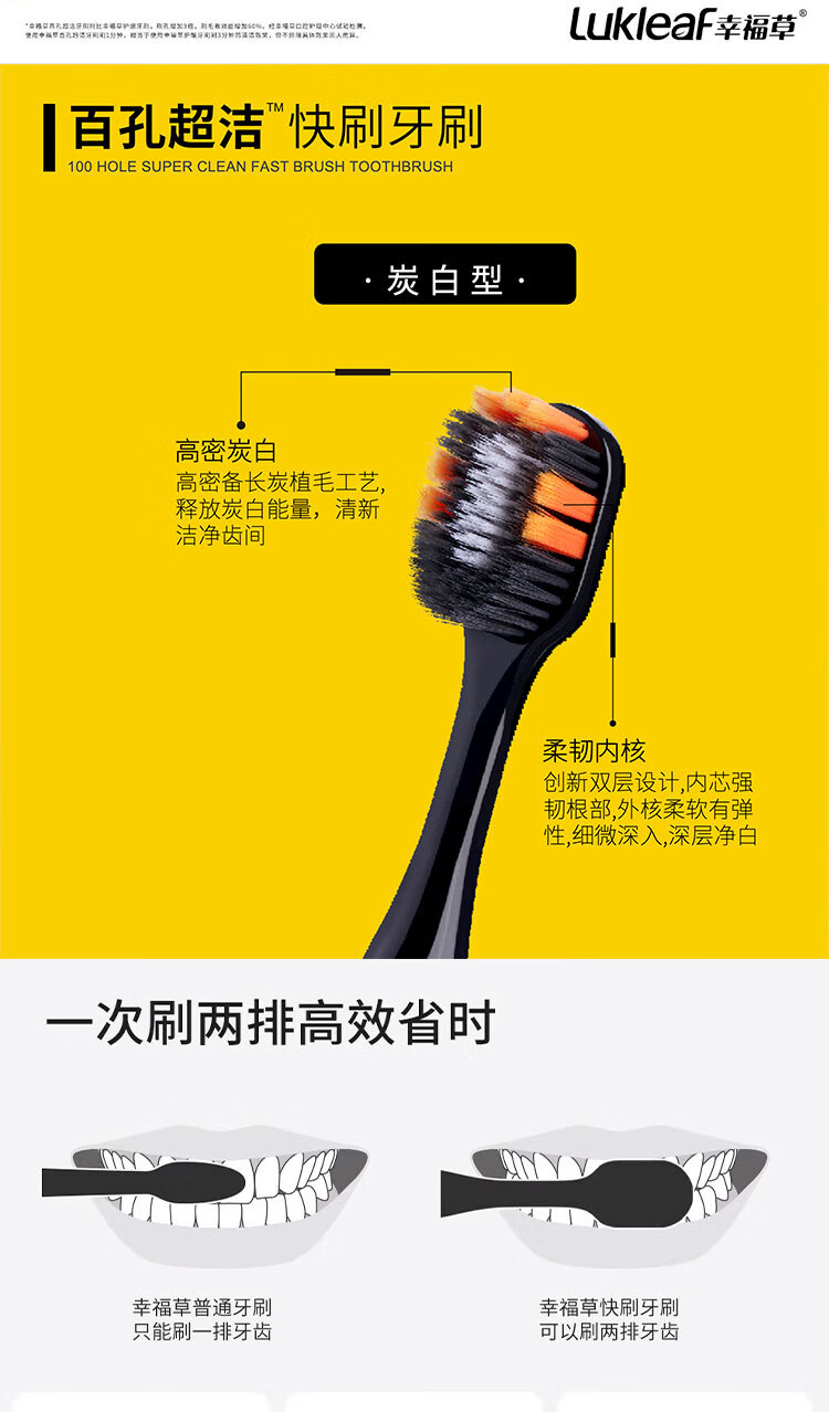 幸福草炭白型超细软毛牙刷大宽头一分钟快刷清洁齿缝去渍防滑柄懒人家庭 超软毛 8支 快刷炭白7029四板