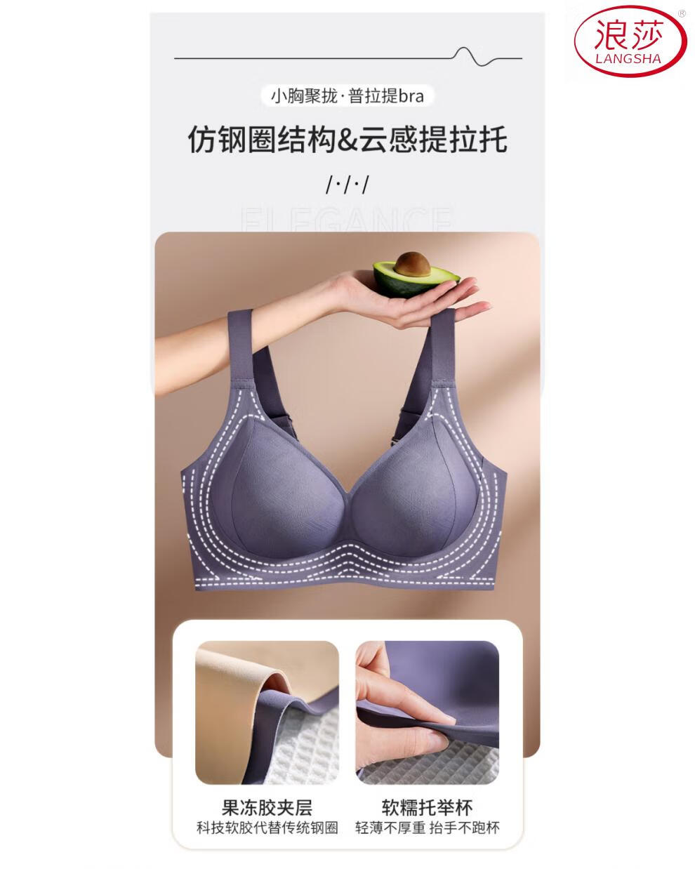 LangSha (LangSha) Pilates bra for women, push-up, auxiliary breasts, anti-sagging, adjustable bra, thin cup, traceless, large breasts, small bra, Oatmeal skin XL 120-135Jin Jin equal to 0.5kg 38/85BCD