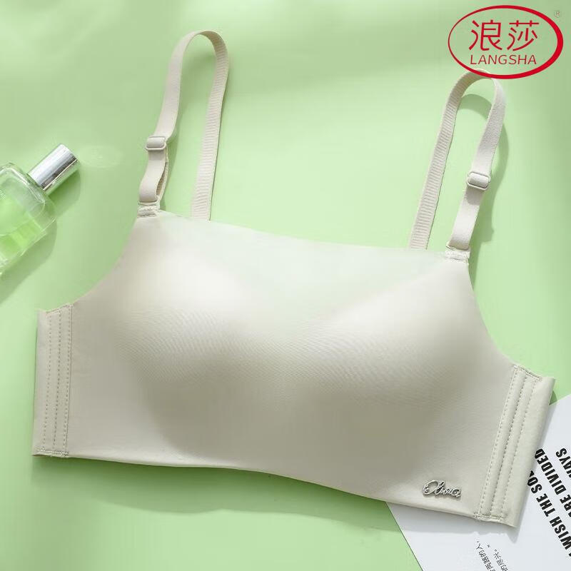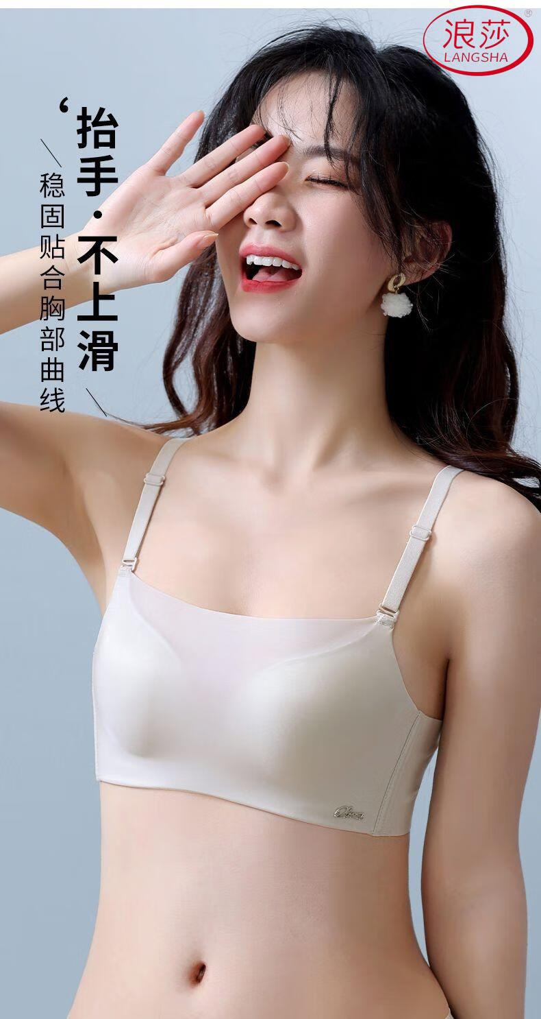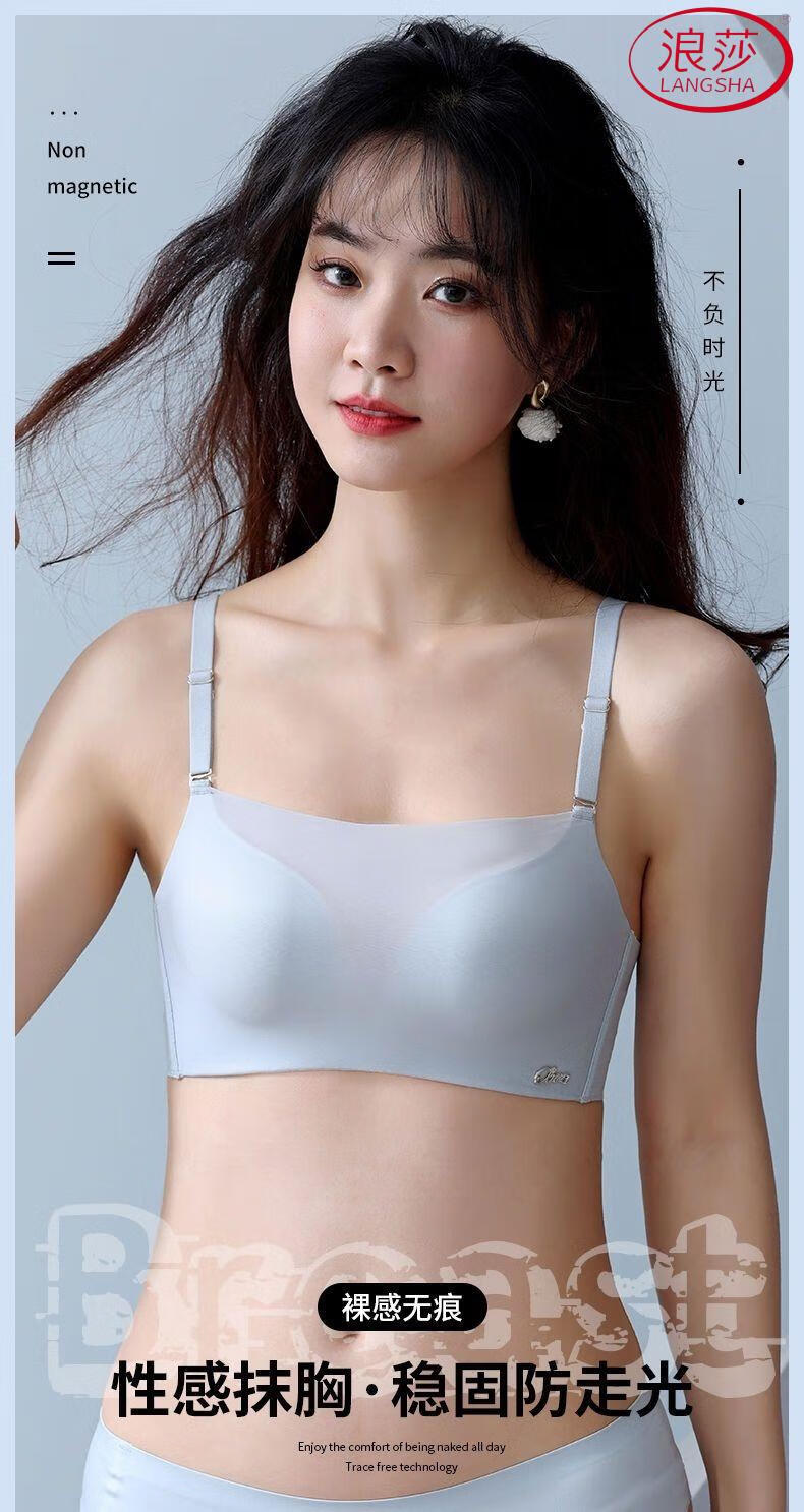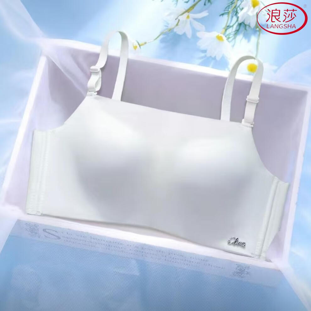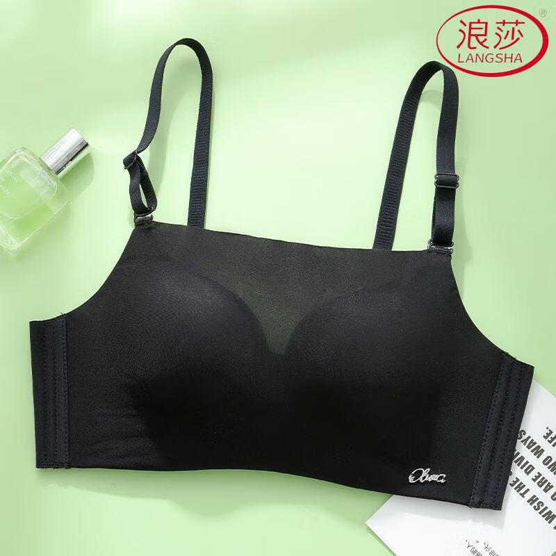 浪莎(LangSha)夏季无痕抹胸内衣女无钢圈聚拢裹胸式文胸性感小胸罩防走光防下垂 清岑式 明黑(1件装) M 32/70AB(上薄下厚2.6c)