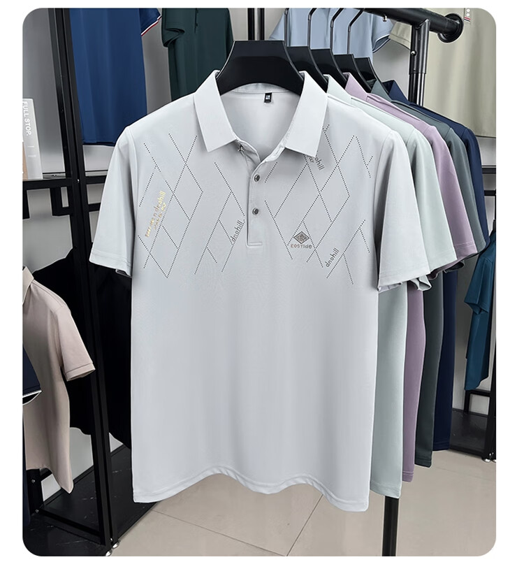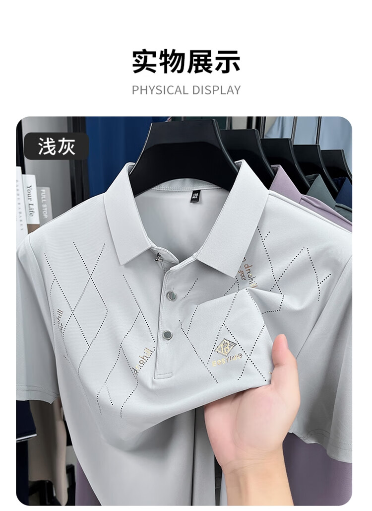 老爷车桑蚕丝短袖T恤夏季新款冰感轻薄休闲抗皱POLO衫中年爸爸装上衣 2677浅灰色 XL 180/92A