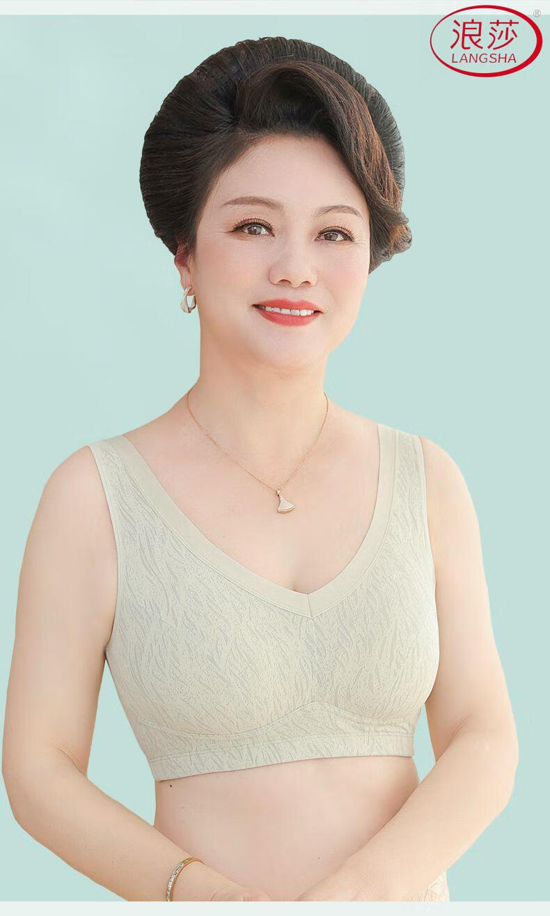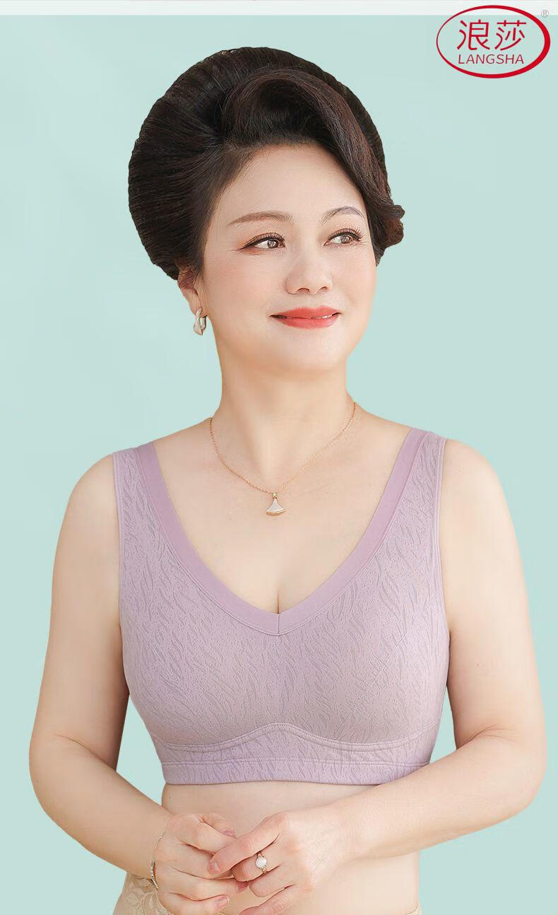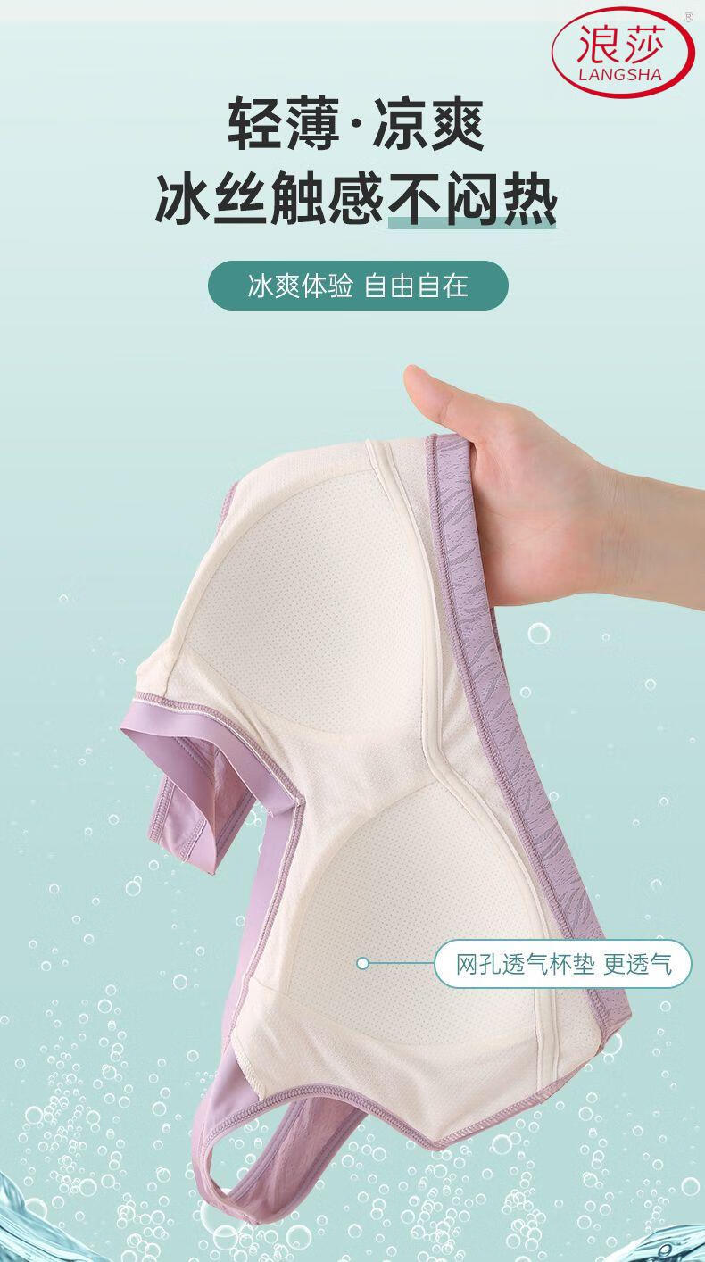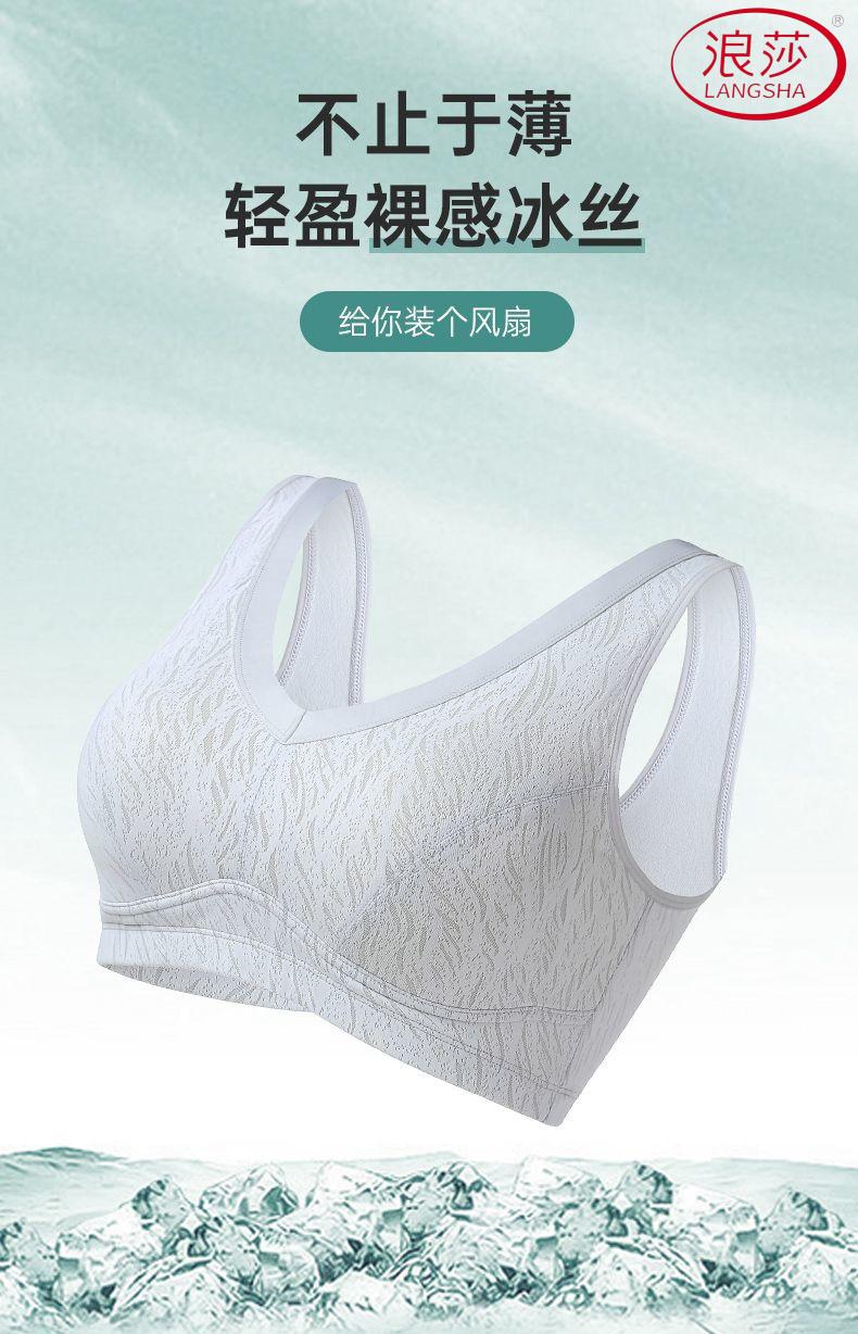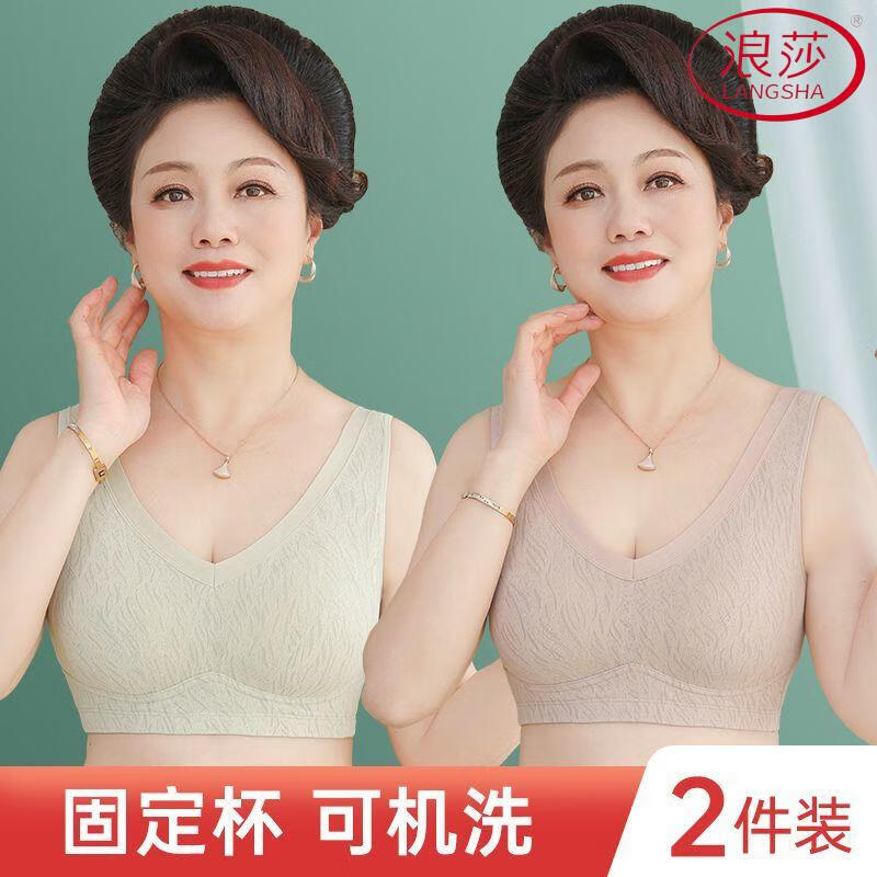 浪莎(LangSha)新款妈妈内衣女运动文胸美背无钢圈中老年冰丝无痕聚拢大码胸罩夏 7038B米杏+芋紫【冰丝2件装】 XL (适合90-110斤)