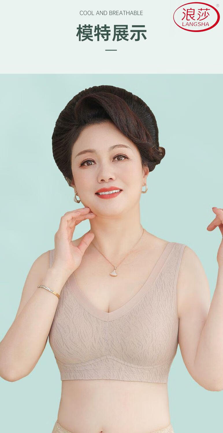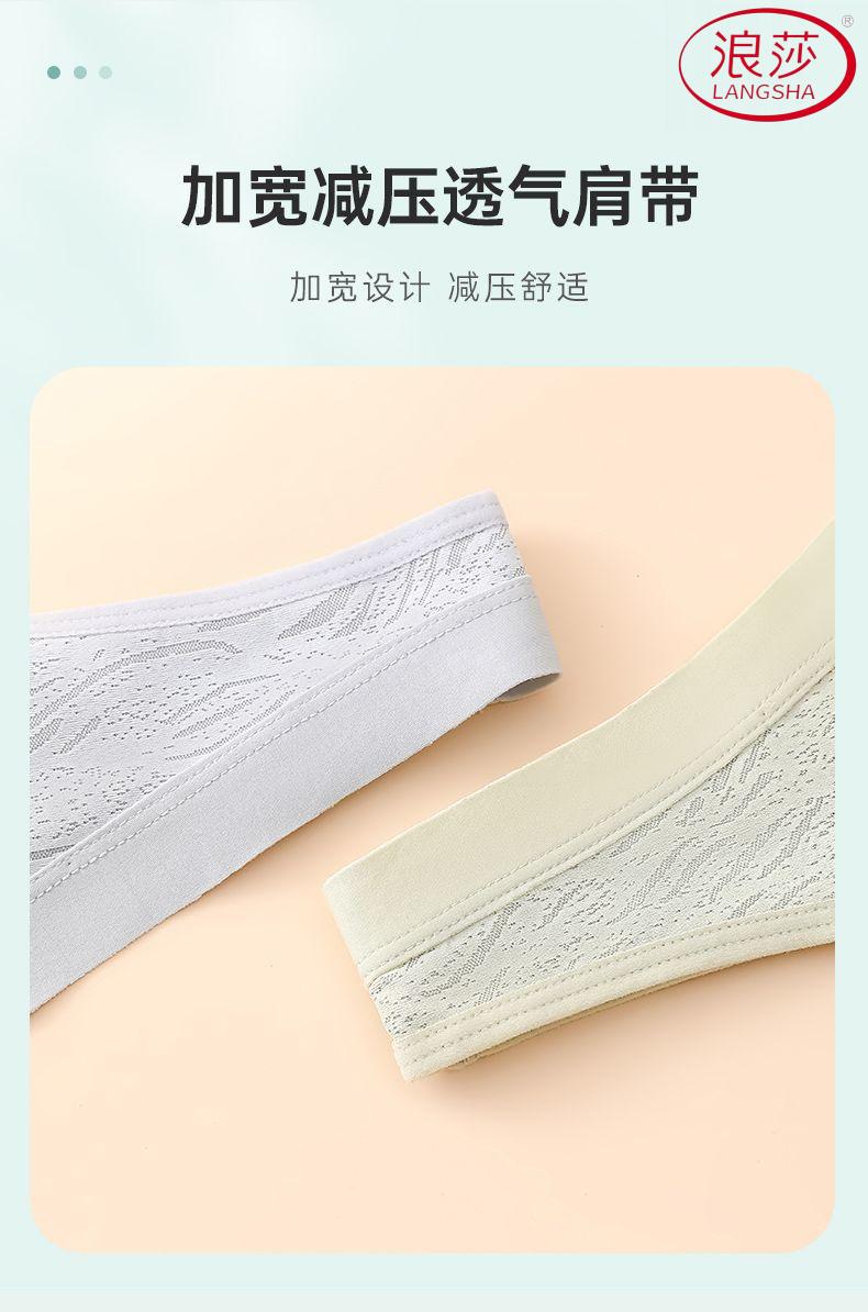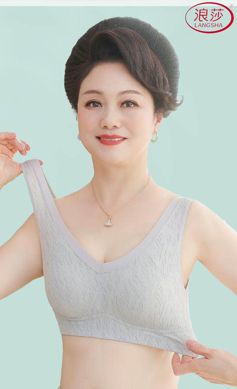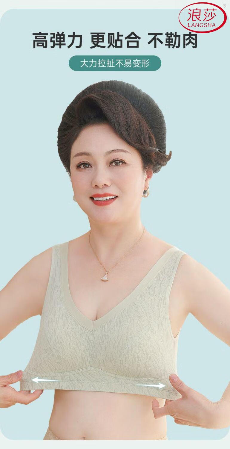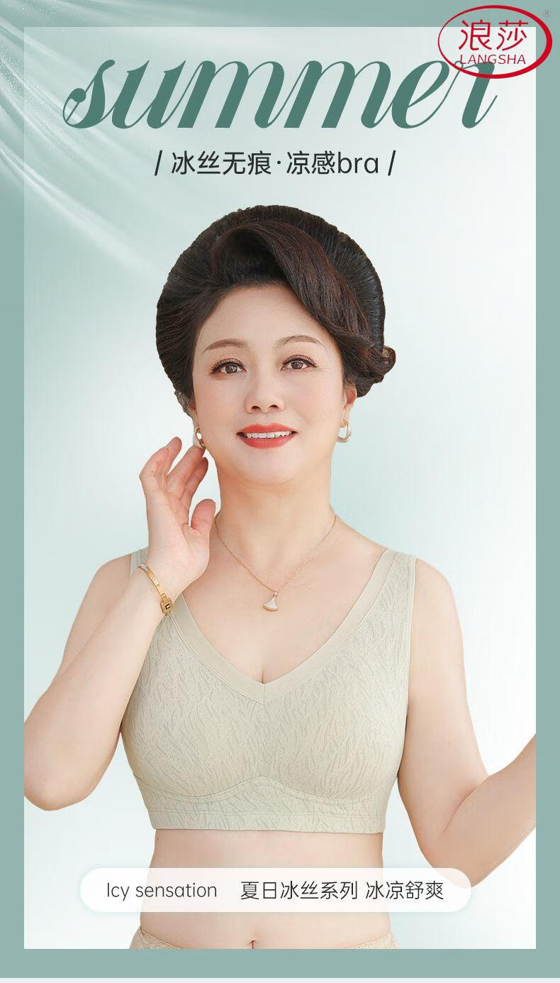 浪莎(LangSha)新款妈妈内衣女运动文胸美背无钢圈中老年冰丝无痕聚拢大码胸罩夏 7038B米杏+芋紫【冰丝2件装】 XL (适合90-110斤)