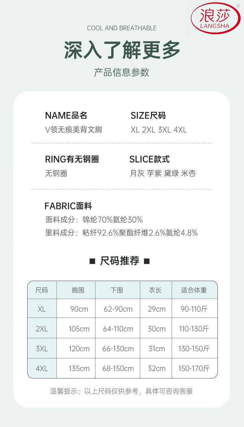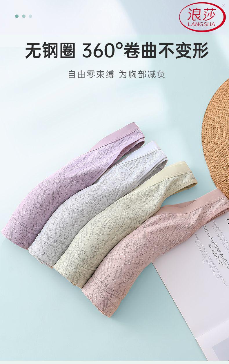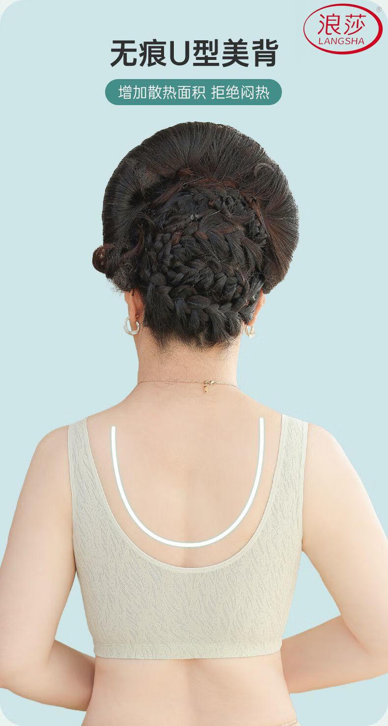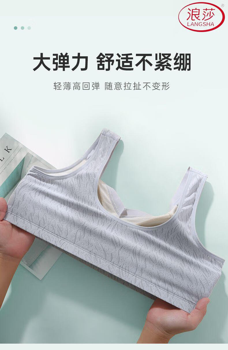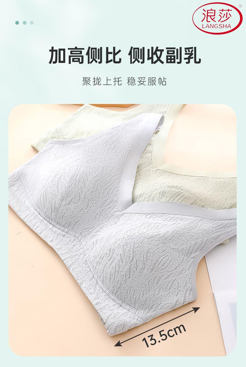 浪莎(LangSha)新款妈妈内衣女运动文胸美背无钢圈中老年冰丝无痕聚拢大码胸罩夏 7038B米杏+芋紫【冰丝2件装】 XL (适合90-110斤)