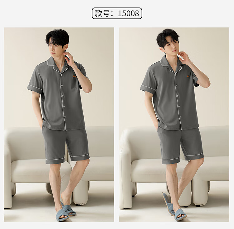 罗蒙(ROMON)睡衣男士夏季纯棉短袖短裤开衫薄款大码纯色休闲家居服套装夏季男 灰紫色12806【100%纯棉】 L 【建议100-120斤穿】