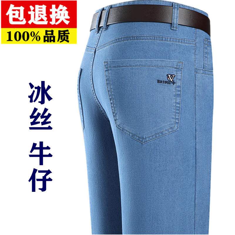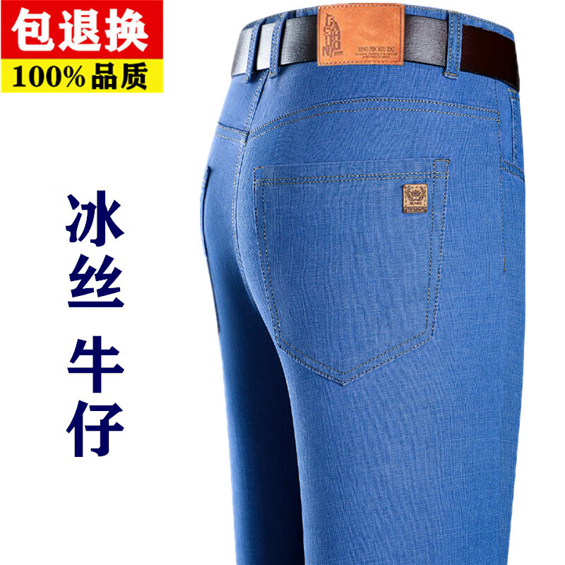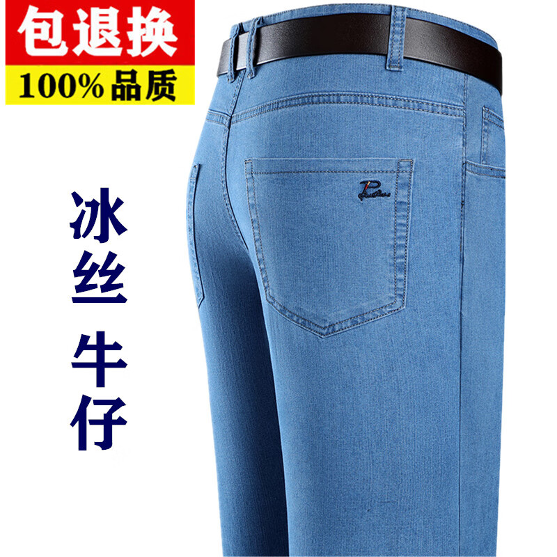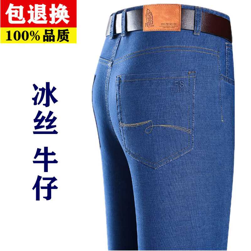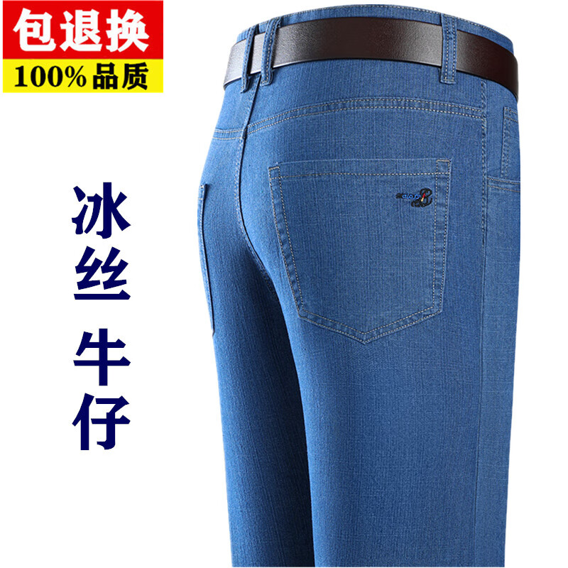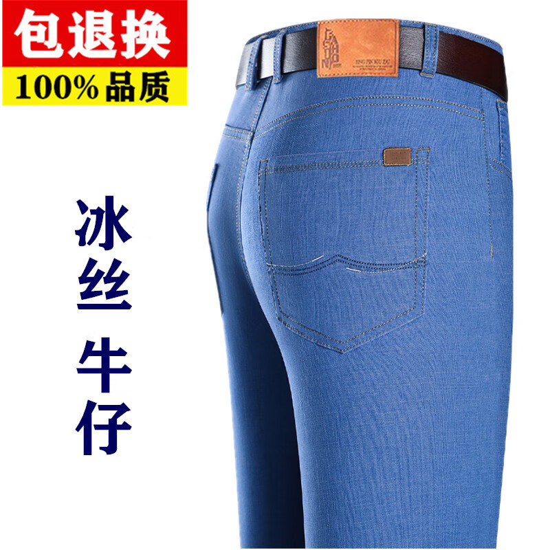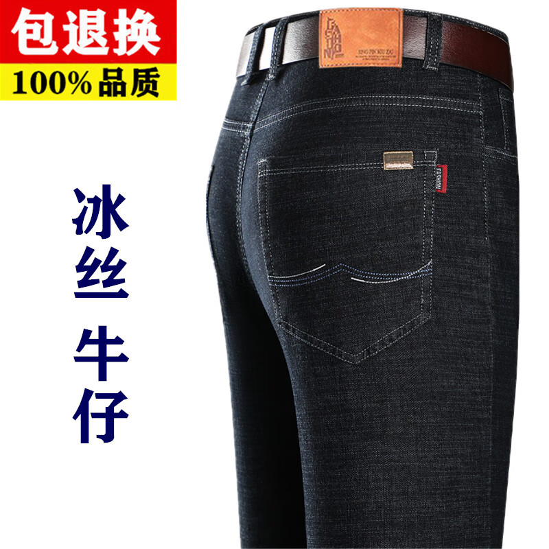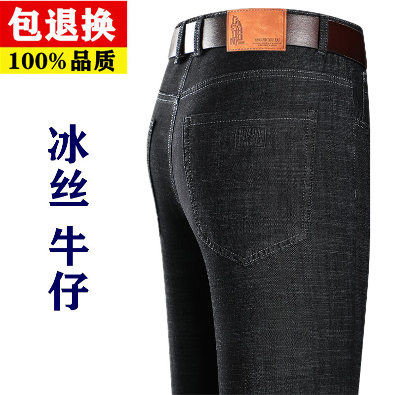 Hengyuanxiang spring and summer thin stretch men's jeans for middle-aged and elderly loose high-waisted straight dad pants versatile high-end trousers 723# dark gray denim 29 2 feet 2 waist