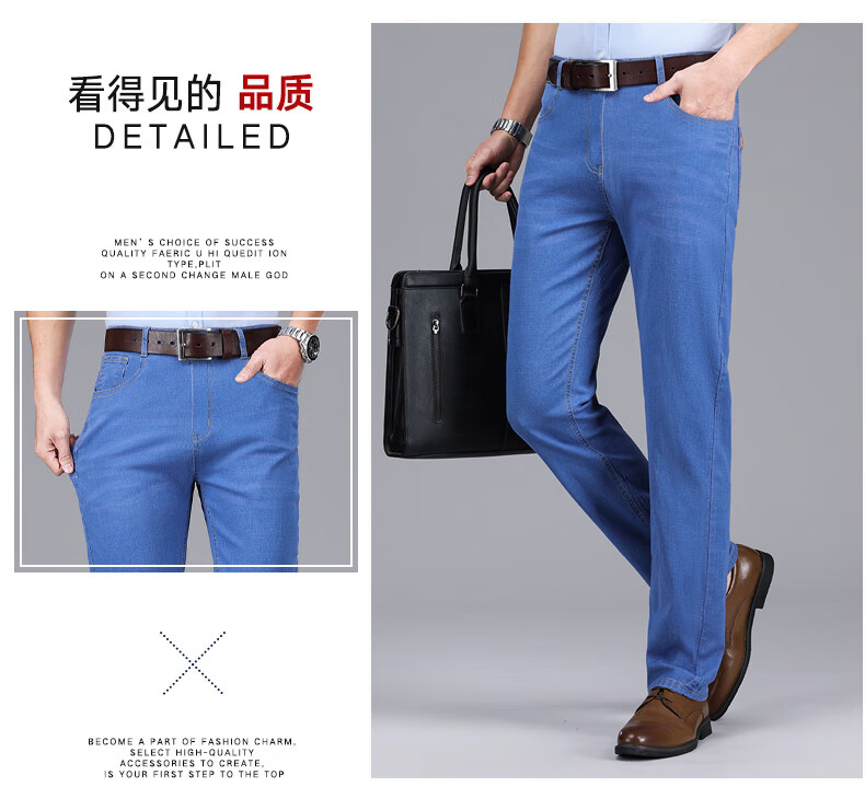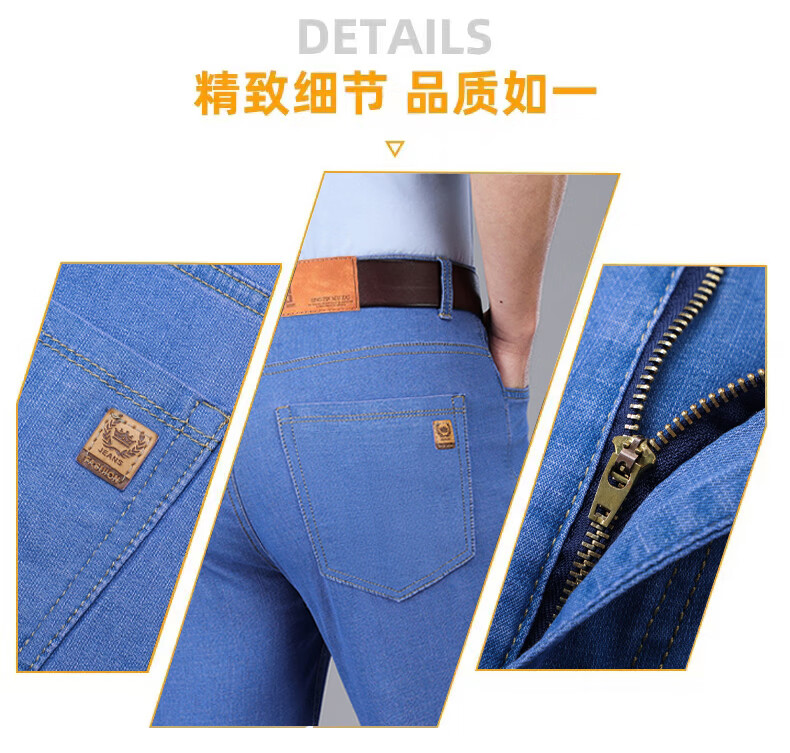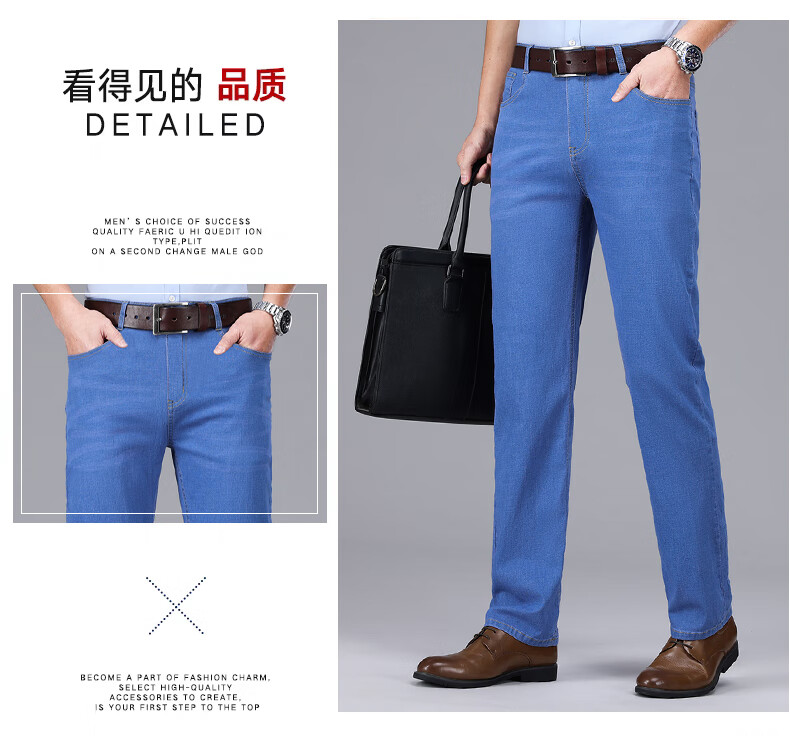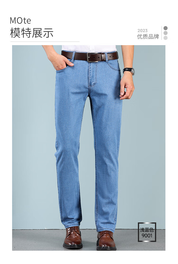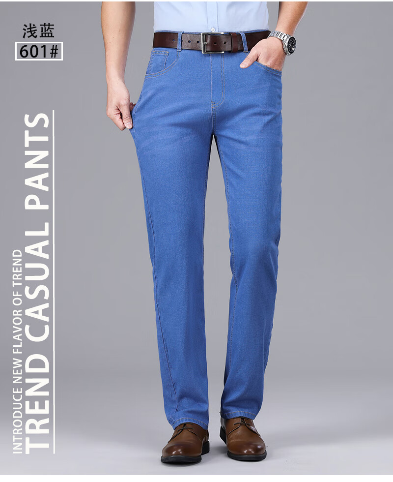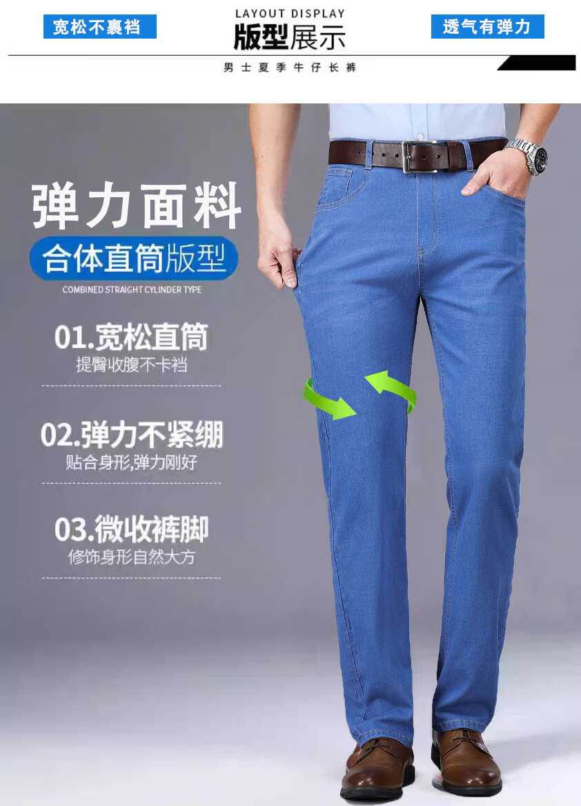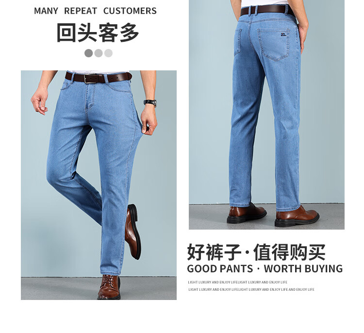 Hengyuanxiang spring and summer thin stretch men's jeans for middle-aged and elderly loose high-waisted straight dad pants versatile high-end trousers 723# dark gray denim 29 2 feet 2 waist