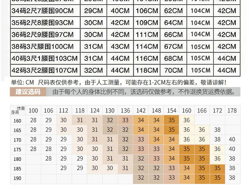 USA(inch) 28-30 30-32 32-34 34-38 38-42