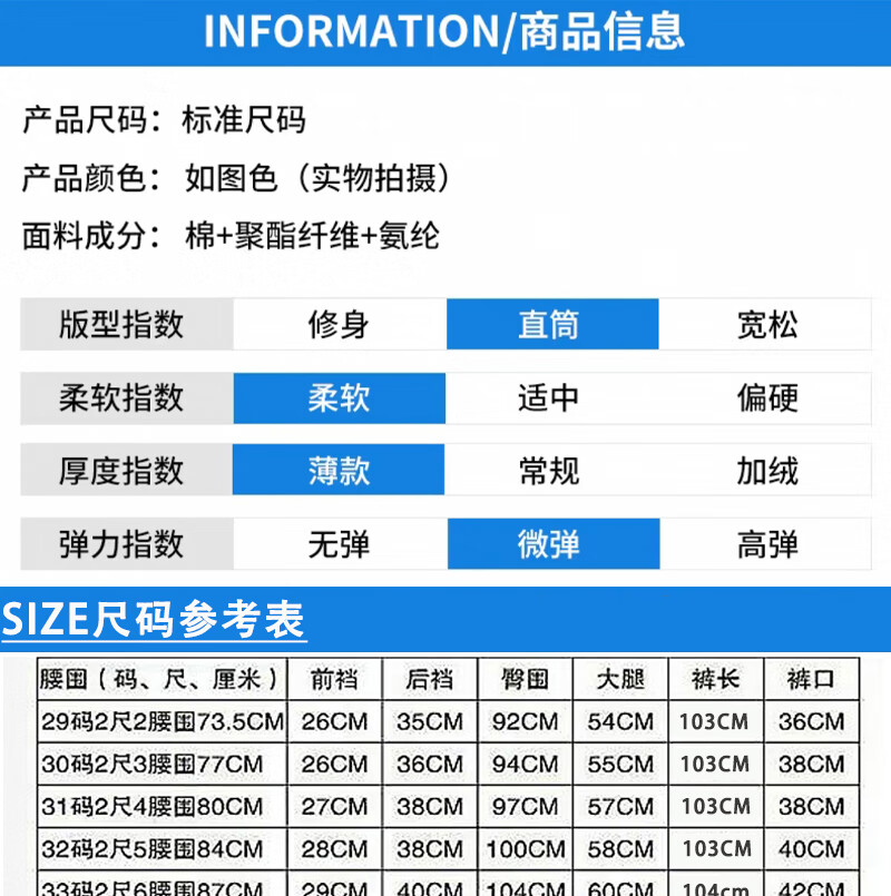 Outseam (cm) 99 cm 101.5 cm 104 cm 106.5 cm 109 cm