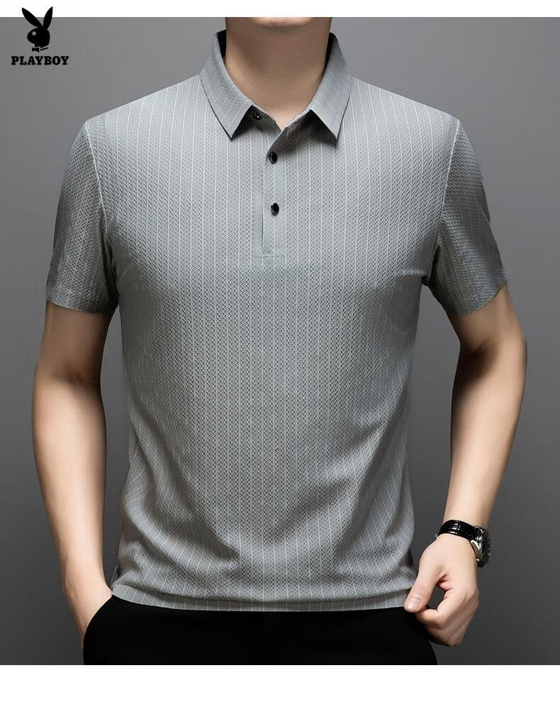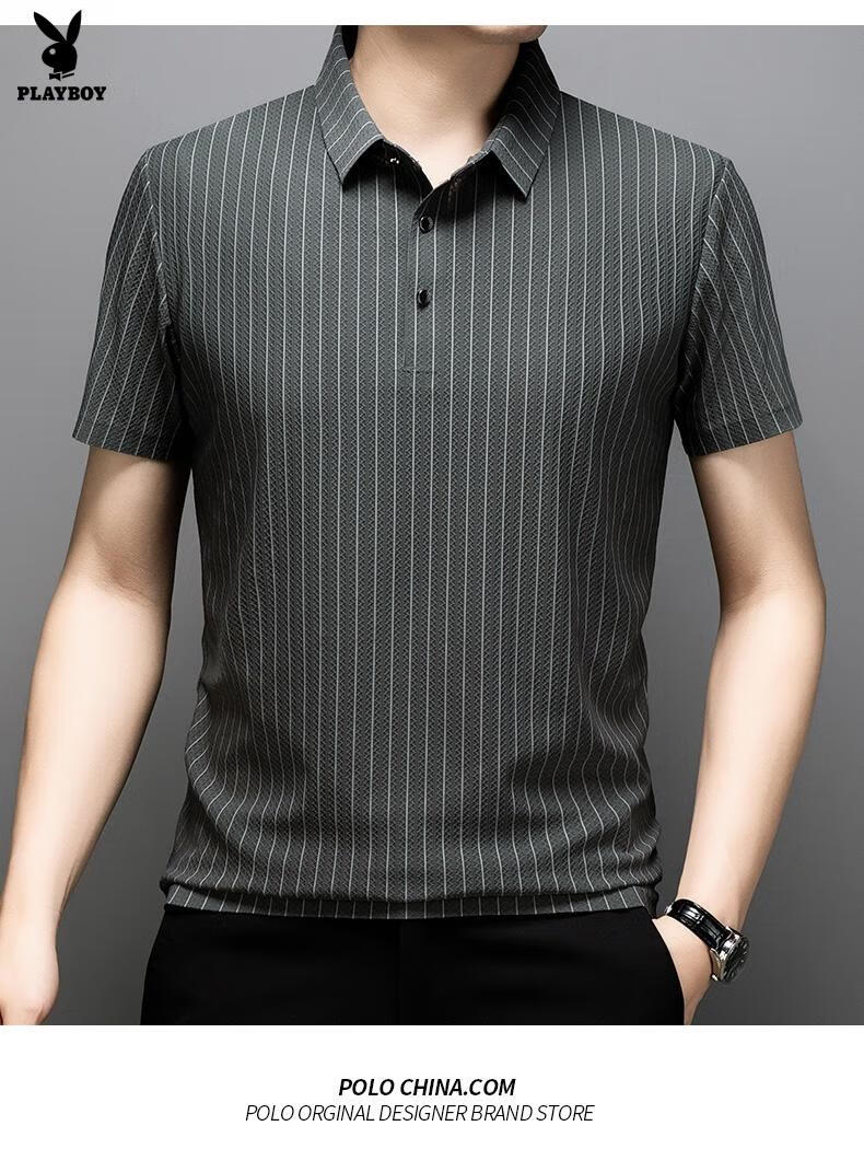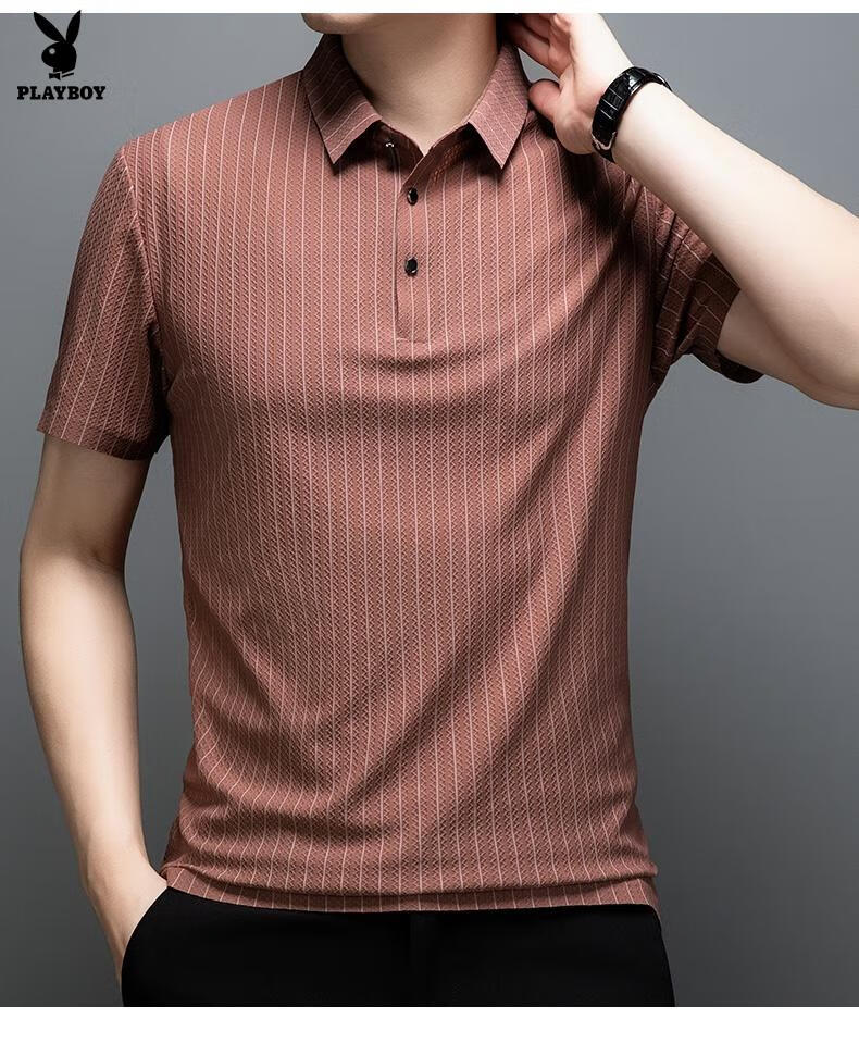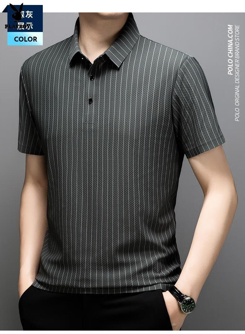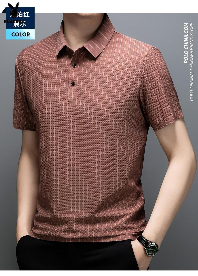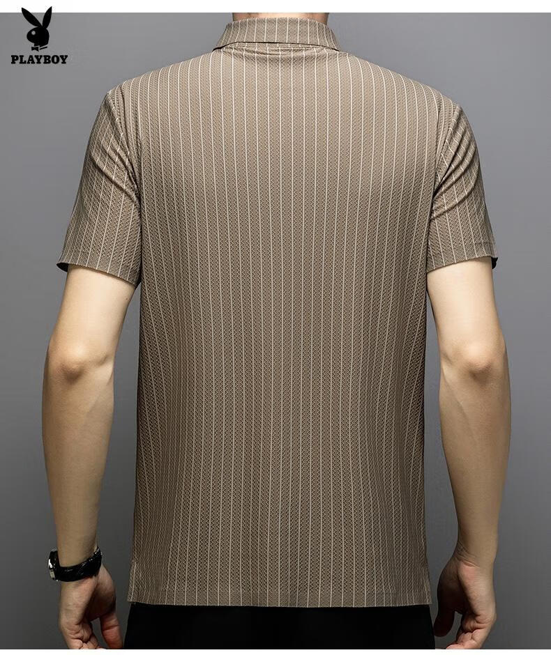 花花公子(PLAYBOY)爸爸夏装Polo衫男士2025年夏季薄款中年冰丝休闲短袖t恤男 11167浅咖色 M 【90-110斤】