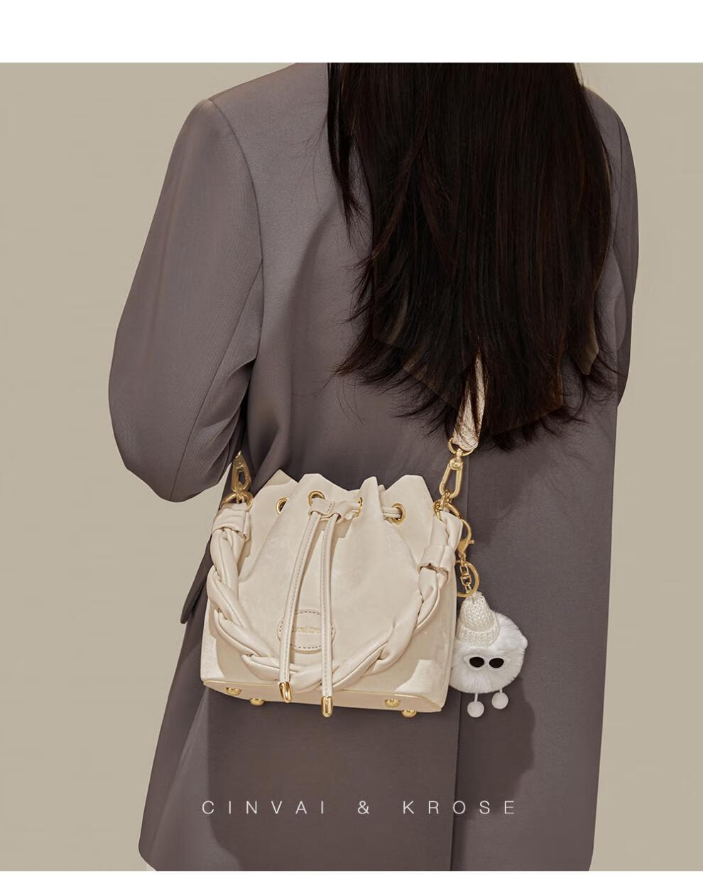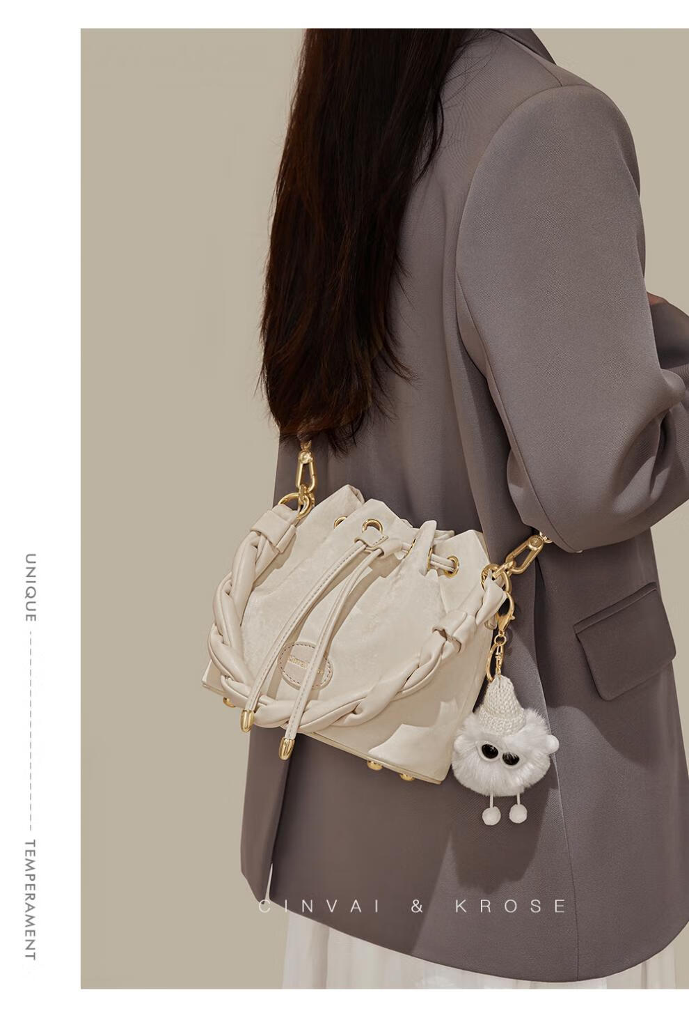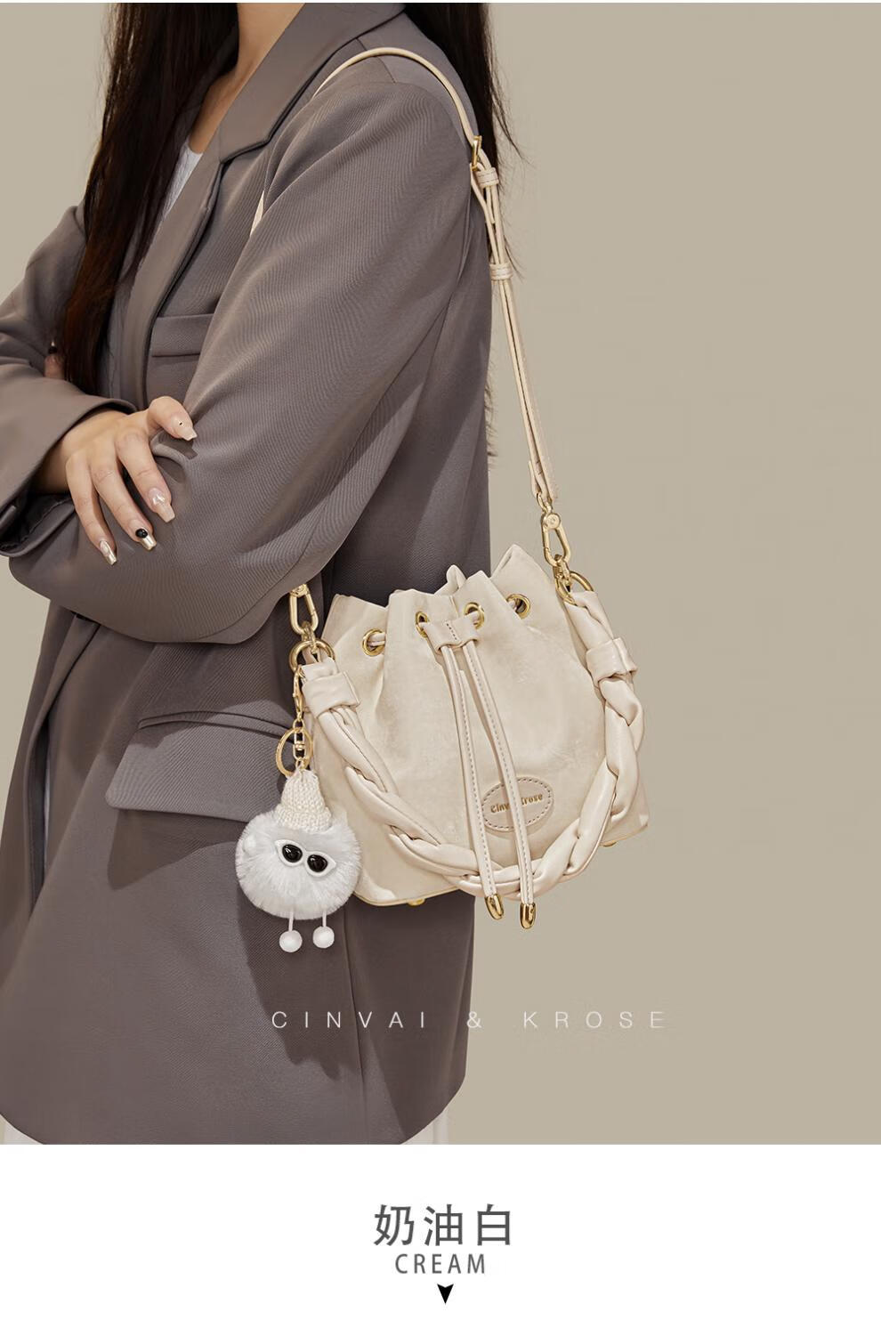 Kouyi nouveau produit sac seau cadeau pour femmes 2026 nouveau sac à bandoulière sac à main de banlieue sac à bandoulière pour femmes crème blanc crème_blanc lumière niche de luxe haut de gamme