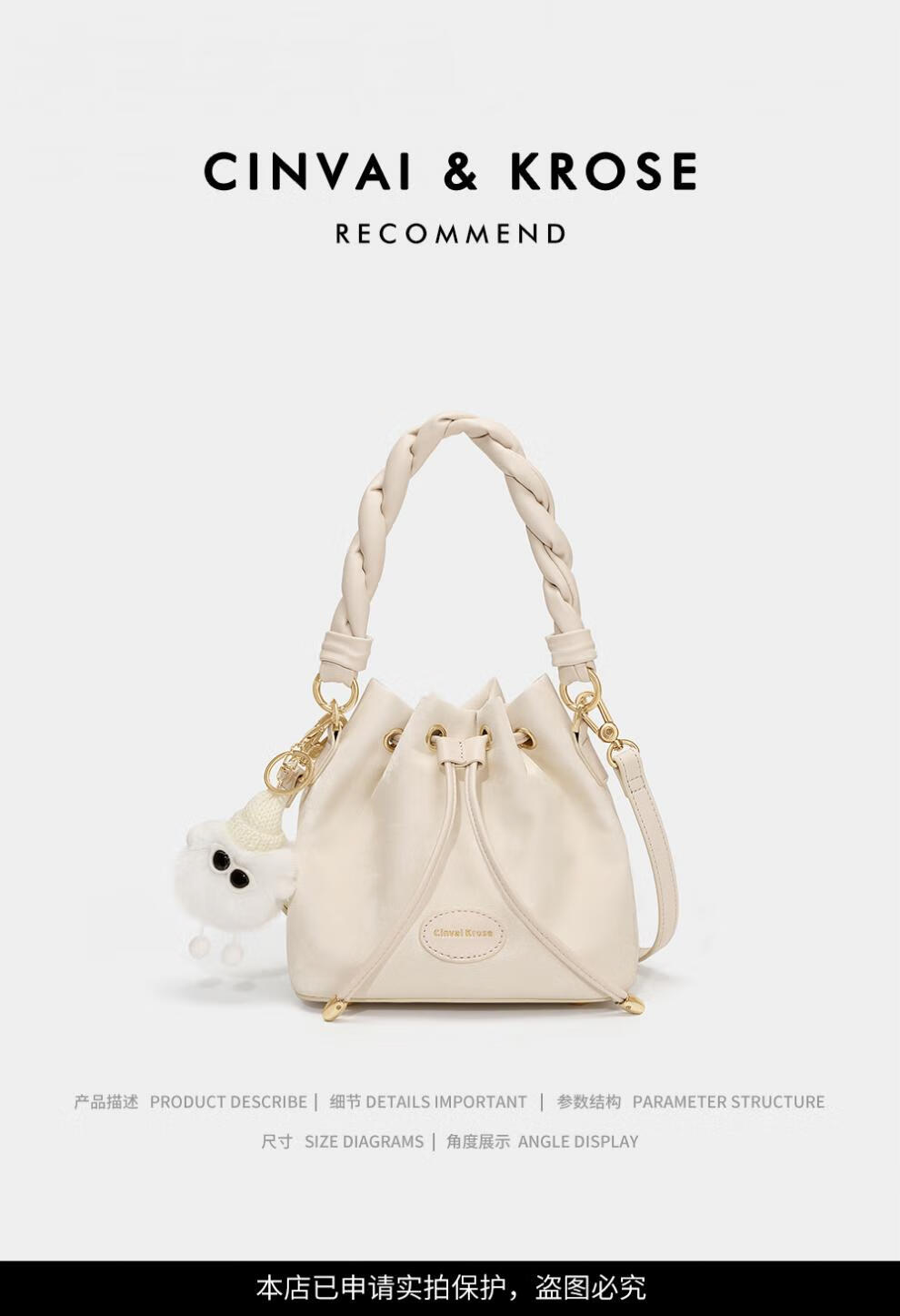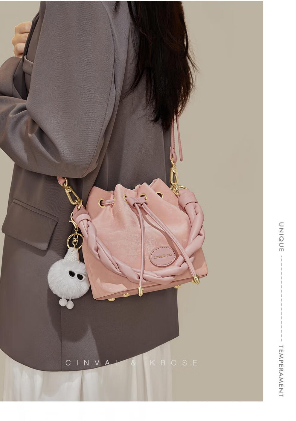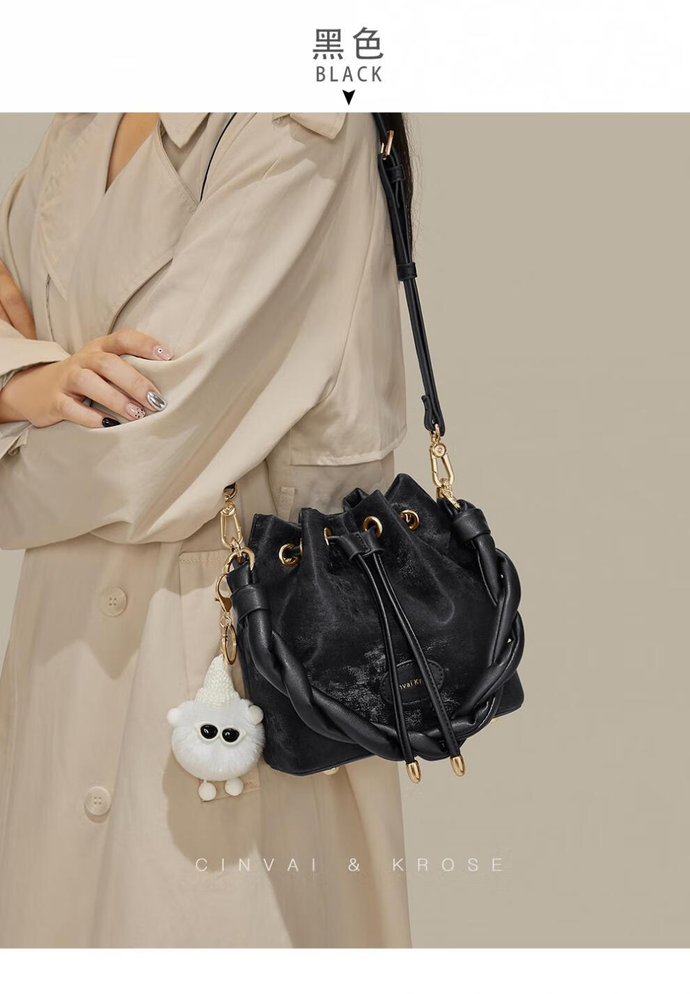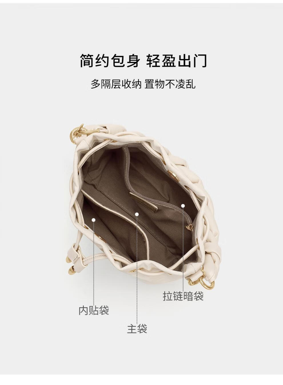 Kouyi nouveau produit sac seau cadeau pour femmes 2026 nouveau sac à bandoulière sac à main de banlieue sac à bandoulière pour femmes crème blanc crème_blanc lumière niche de luxe haut de gamme