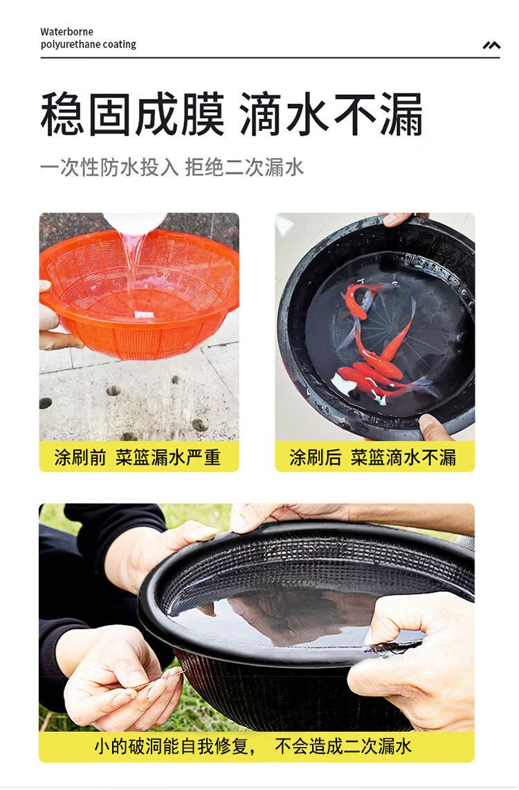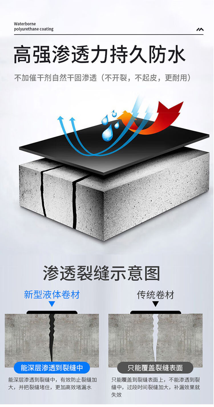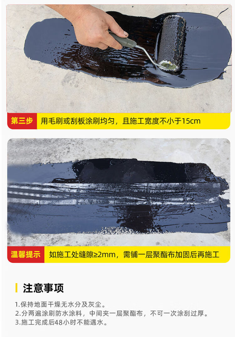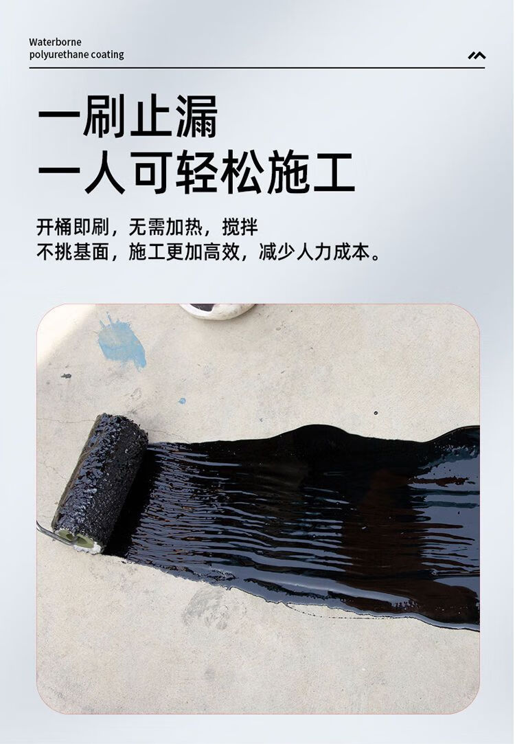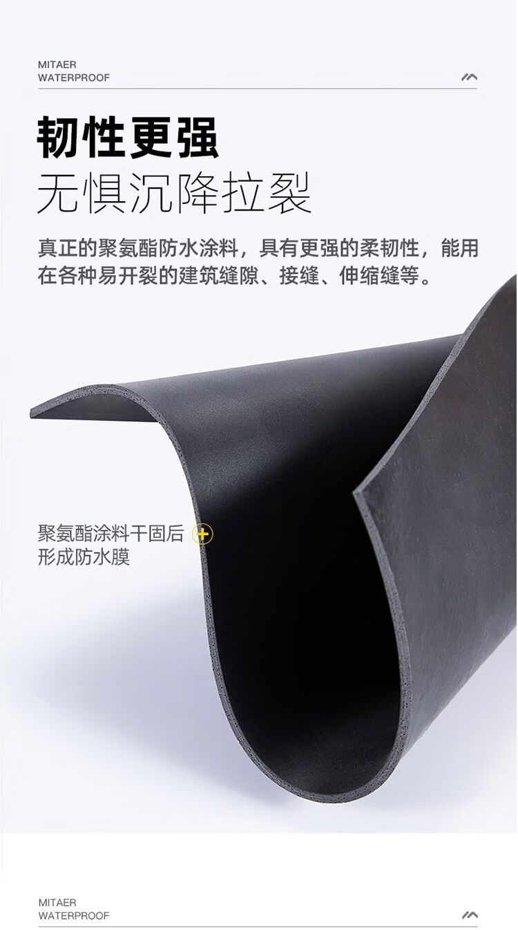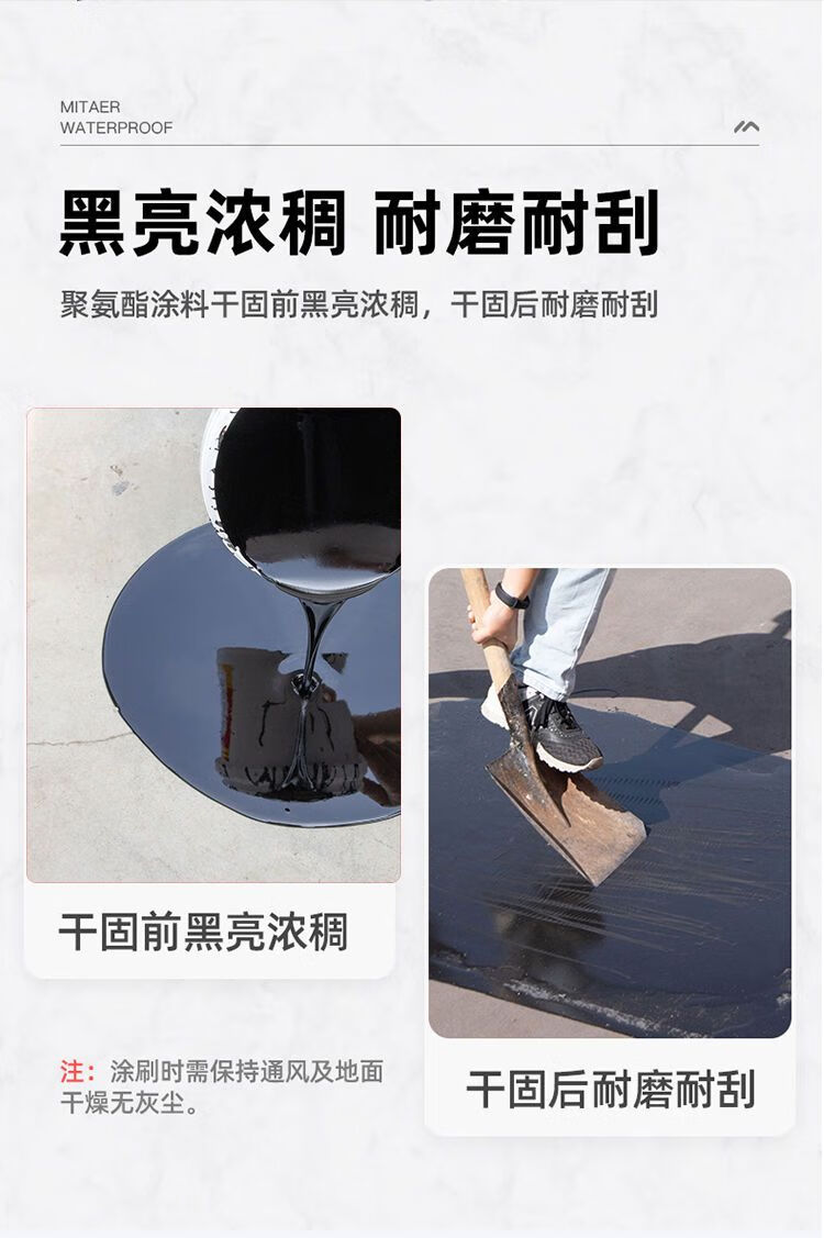 XMSJ防水涂料房顶补漏裂缝平房漏水卫生间厕所屋顶补漏聚氨酯涂料 (可刷120平方) 40g 12040kg 黑色(+全套工具+聚酯布)