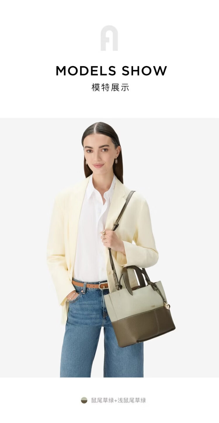 芙拉(FURLA)【新年礼物】PRIMROSE牛皮中号女士拼色设计上班通勤手提托特包 鼠尾草绿+浅鼠尾草绿