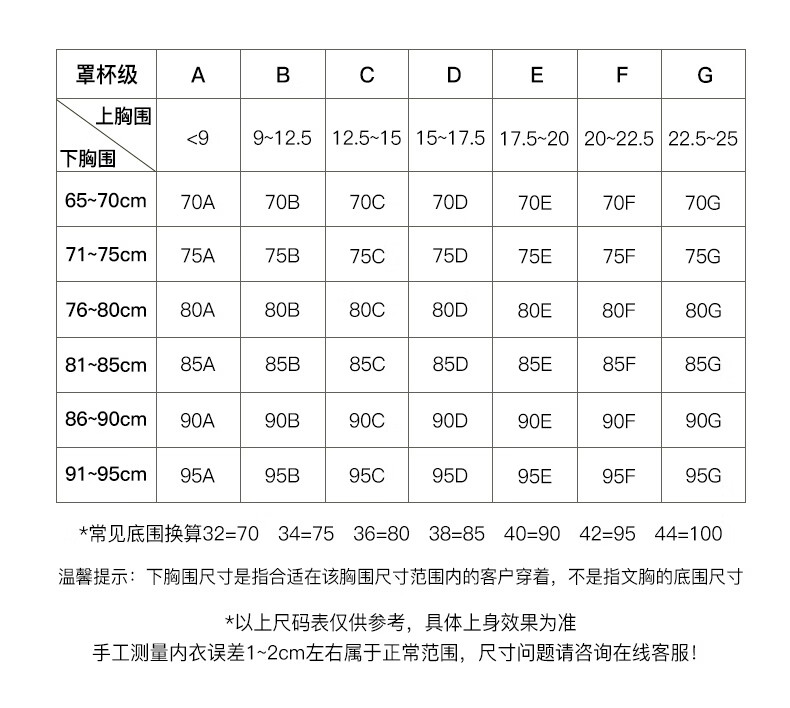 China (cm) 160-165/84-86 165-170 / 88-90 167-172 / 92-96 168-173 / 98-102 170-176 / 106-110