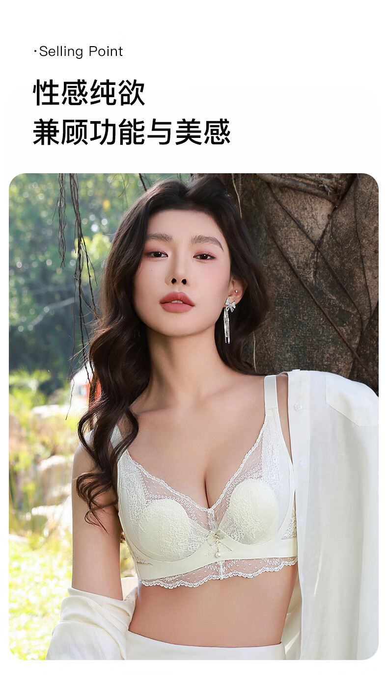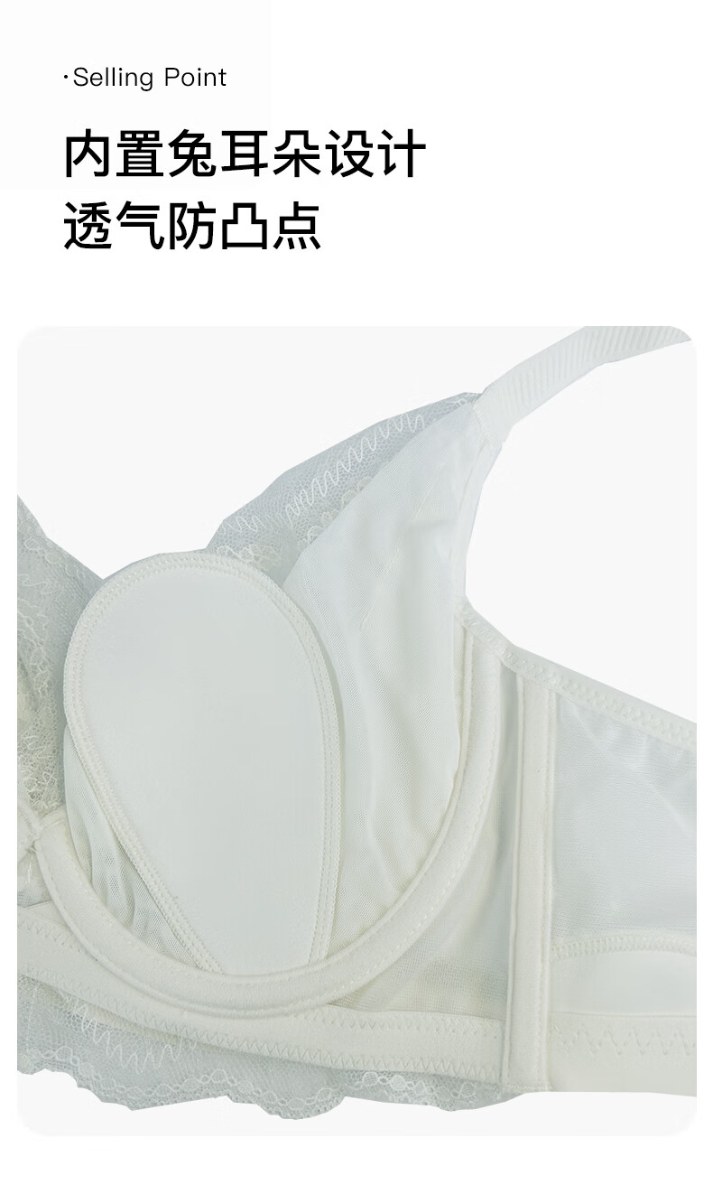 茜施尔(SHCER)薄款内衣女大胸显小防下垂收副乳胸罩性感蕾丝文胸A3830W 米白色 75B