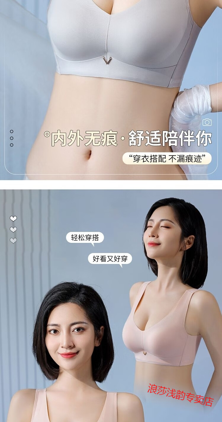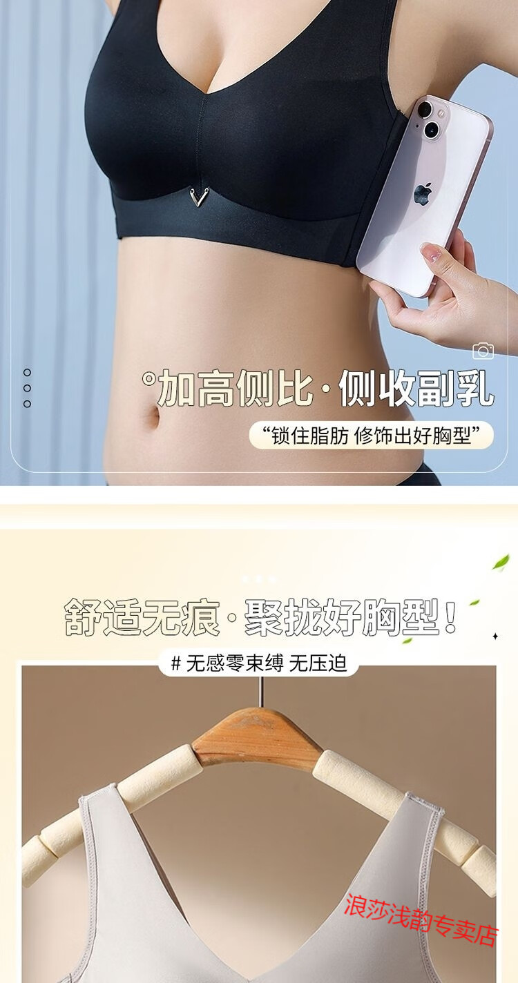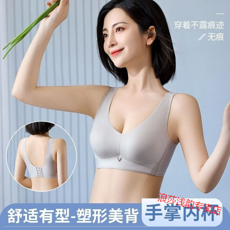 浪莎(LangSha)新款聚拢无痕背心式乳胶手掌杯内衣无钢圈防下垂轻薄运动上托文胸 灰色 75A 34