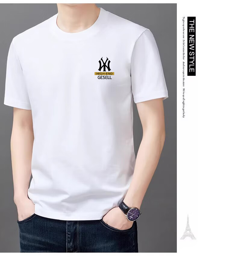 罗蒙短袖t恤男2025新款夏季纯棉正肩商务休闲圆领半袖体恤衫上衣 R06白色+829白色【纯棉两件装】 S 建议【80-95斤】