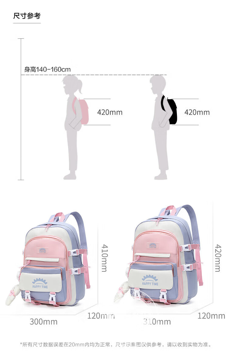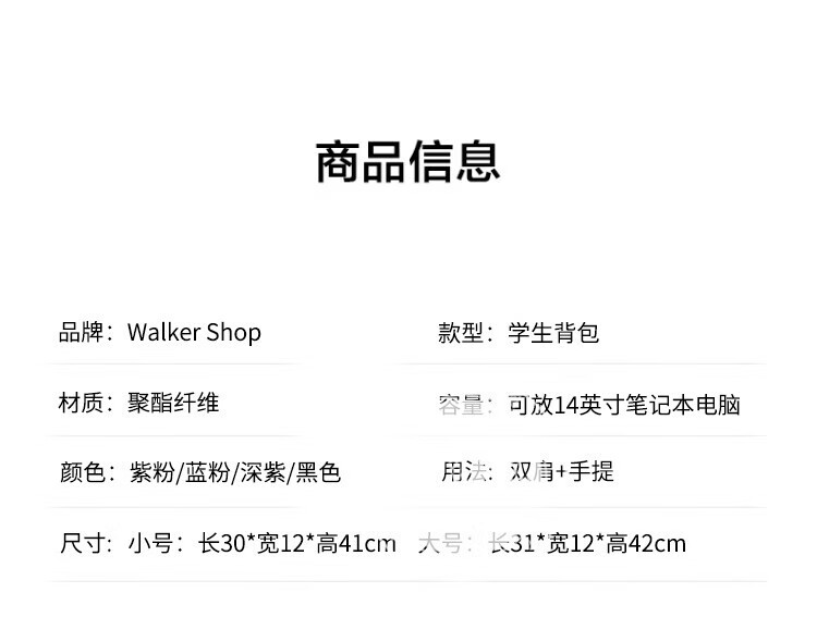Walker Shop轻奢品牌学生书包女高中生初中生小学生三到五六年级双肩包背包男 蓝色大号42*31*12cm