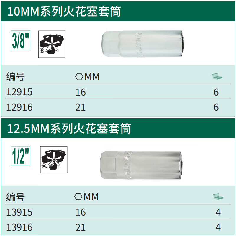 DSsata Auto-Zündkerzen-Steckschlüssel, Motorrad-Reparatur, Auto-Reparatur-Werkzeug, 16 13915 (16 mm), 12,5 mm, Serie Spark
