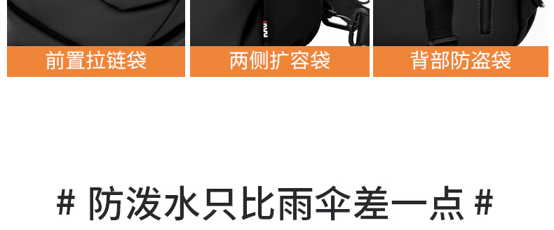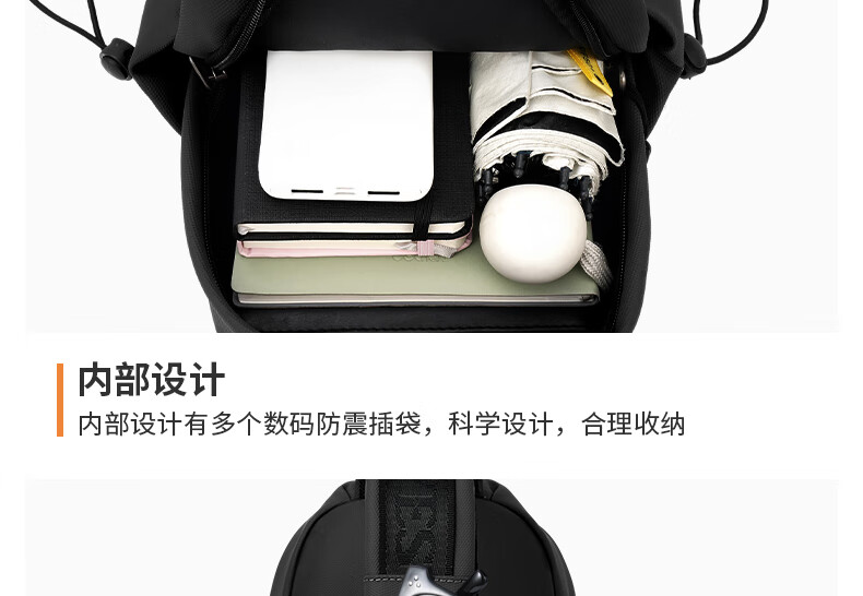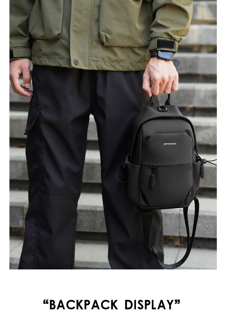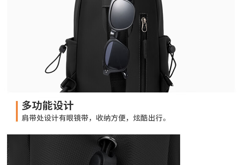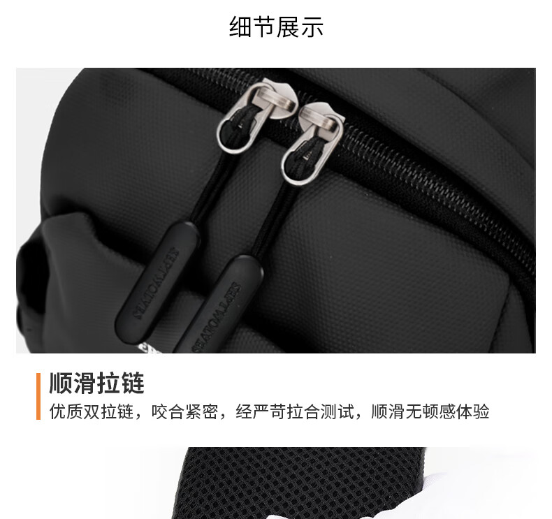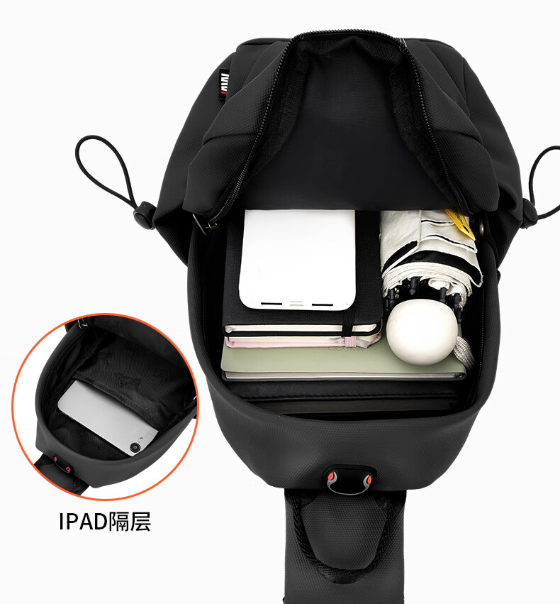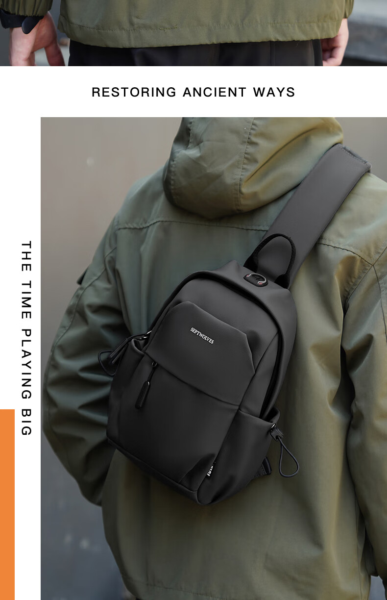 七匹狼男士斜挎包大容量胸包单肩包2025年新款通勤防泼水休闲便携小背包 黑色【升级七层仓 侧袋可放雨伞水杯】