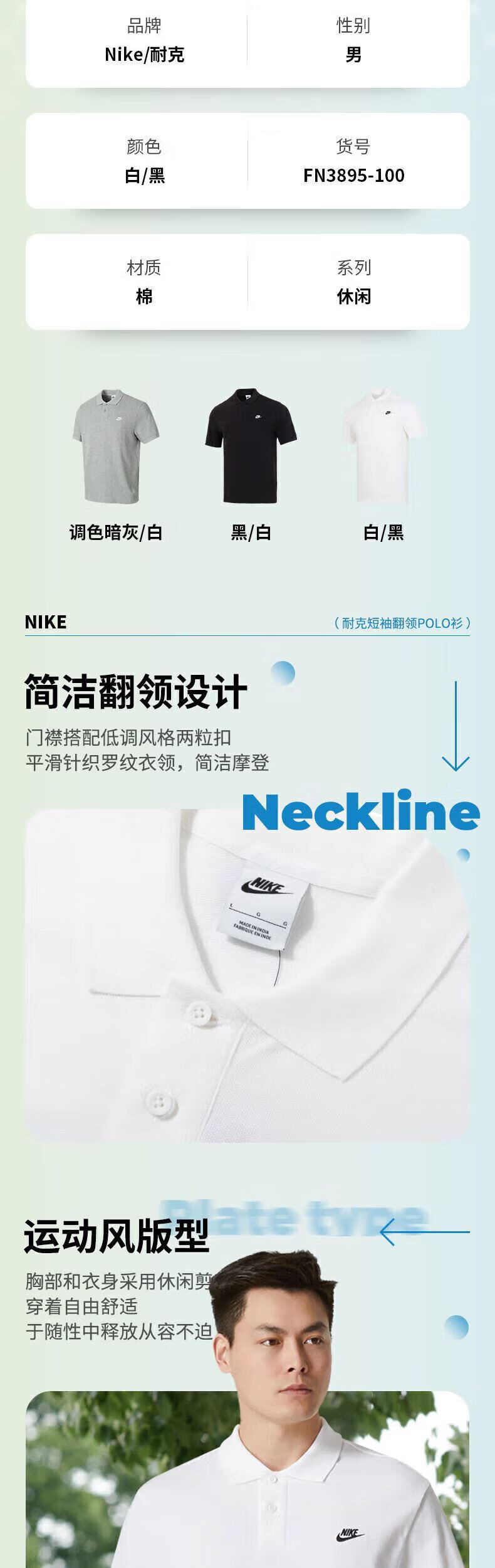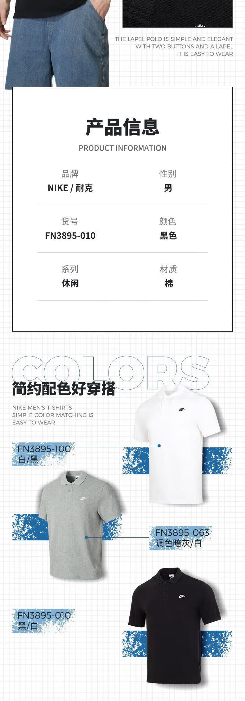 Nike (NIKE) offizieller Store Herrenoberteile Neue Mode Lässiges Revers Atmungsaktives, schnell trocknendes Poloshirt Sportbekleidung Kurzarm-T-Shirt FN3895-063-Grau-gesticktes Logo M
