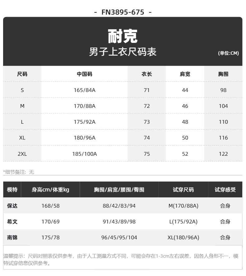 China (cm) 165 / 88-90 170 / 96-98 175 / 108-110 180 / 118-122 185 / 126-130