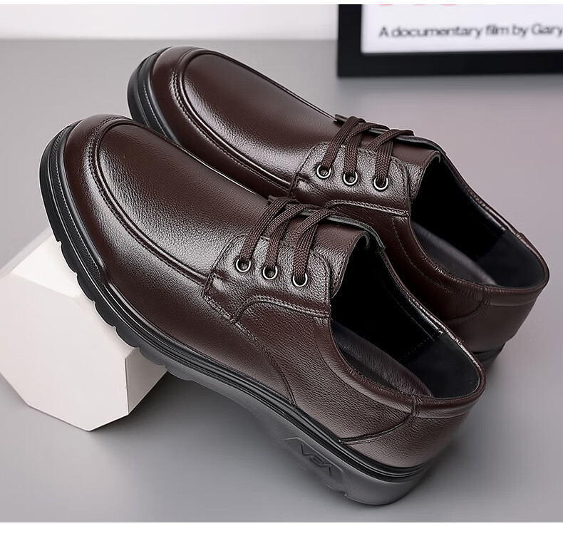 意尔康王子皮鞋男2025新款休闲男款真皮透气软底商务正装皮鞋子加绒棉鞋批发 6627 棕色 40