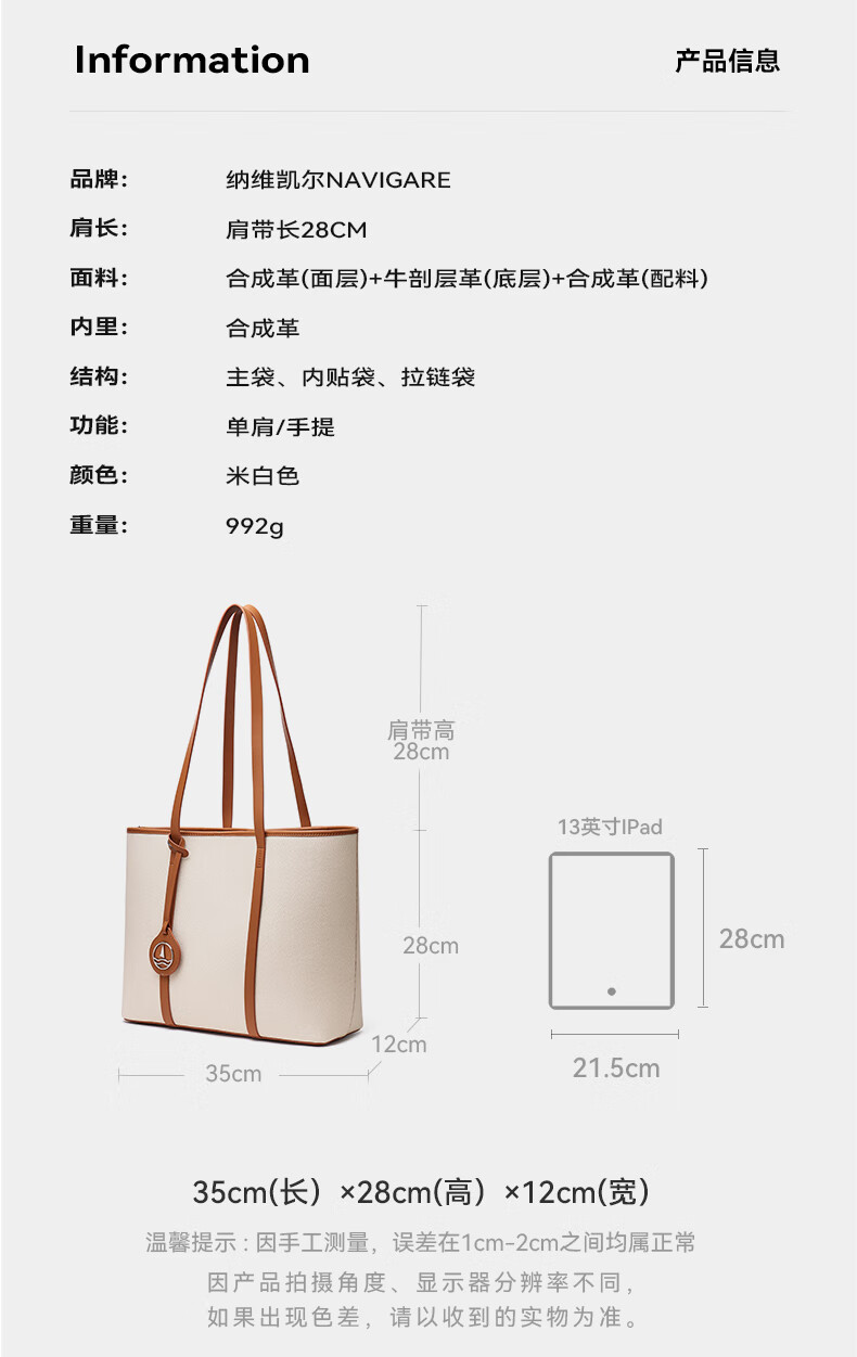 Navikel bolso de navegación pequeño italiano bolso de mano para mujer 25 nuevo estilo bolso de piel de vaca bolso de moda de gran capacidad blanco roto