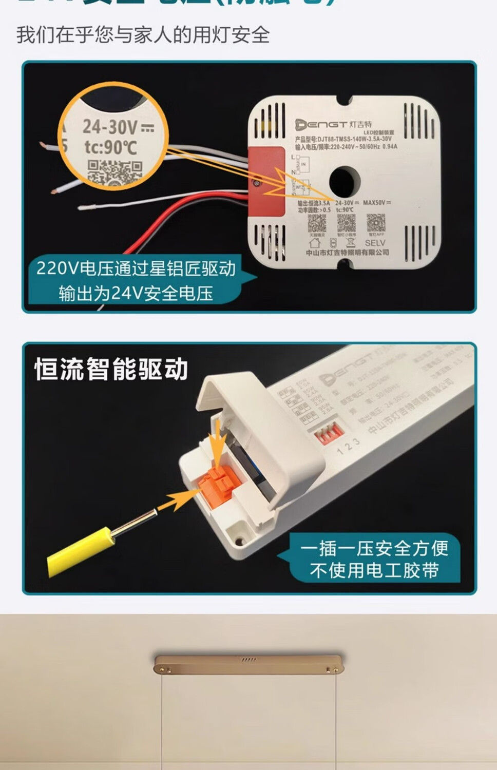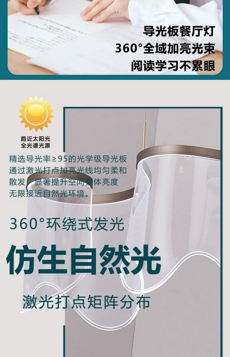 欧普照明(OPPLE)2025餐厅灯吊灯现代意式高端感设计师长条导光板餐吊灯吧台灯 6174-餐厅吊灯直径120CM--80W