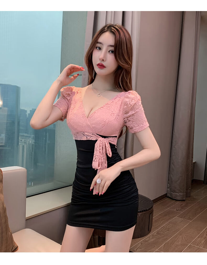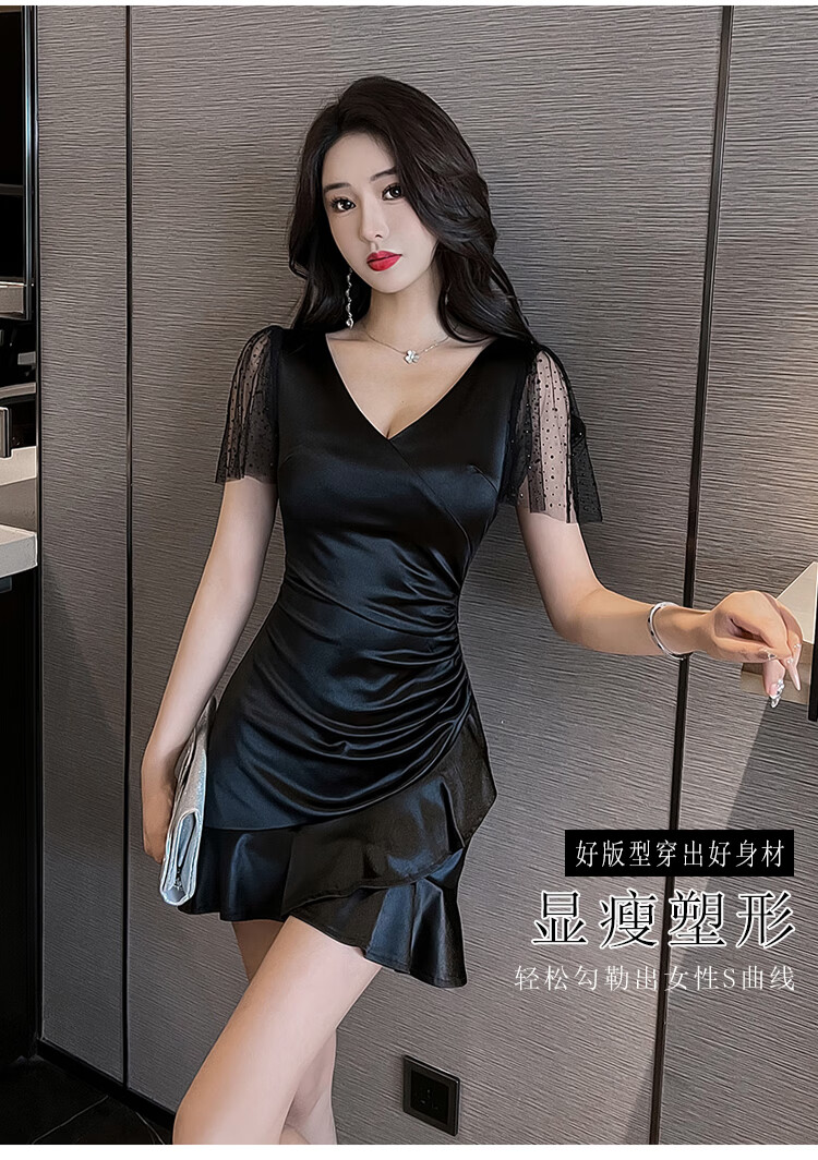 蕰嫚馨技师工作服性感小个子夜场KTV连衣裙女佳丽晚礼服足浴按摩SPA沐足 3883黑色 S 建议80-95斤