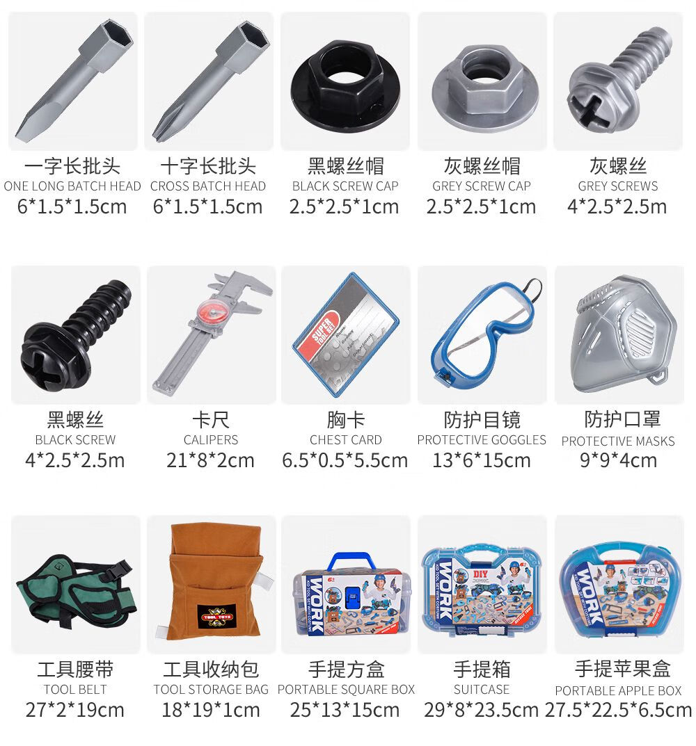 儿童工具箱拆卸玩具套装组拼台仿真修理维修电钻电动拧螺丝刀男孩 9905百变套装无电钻PCS80
