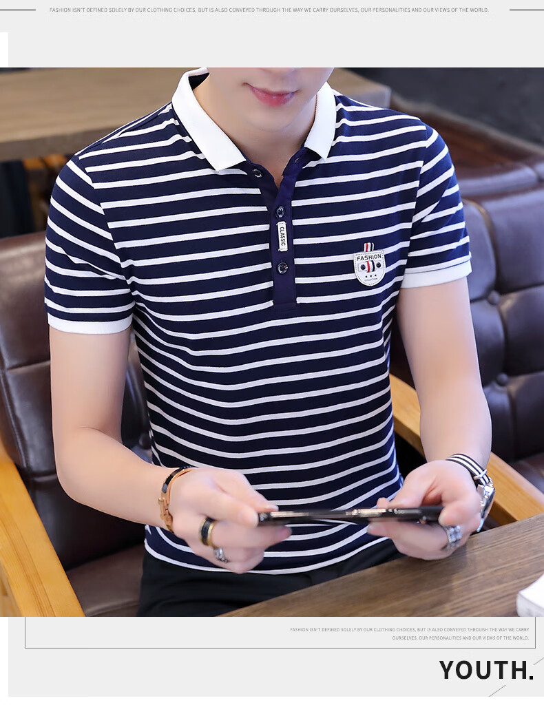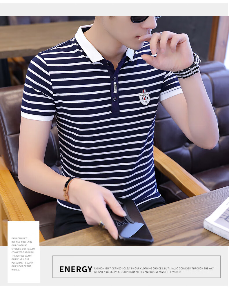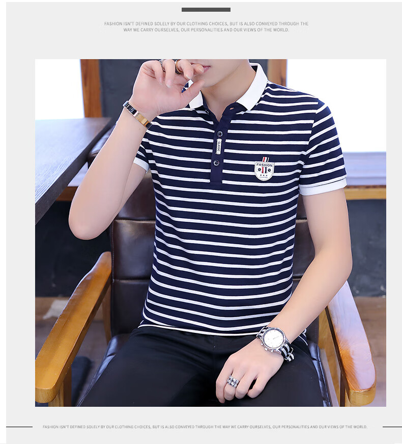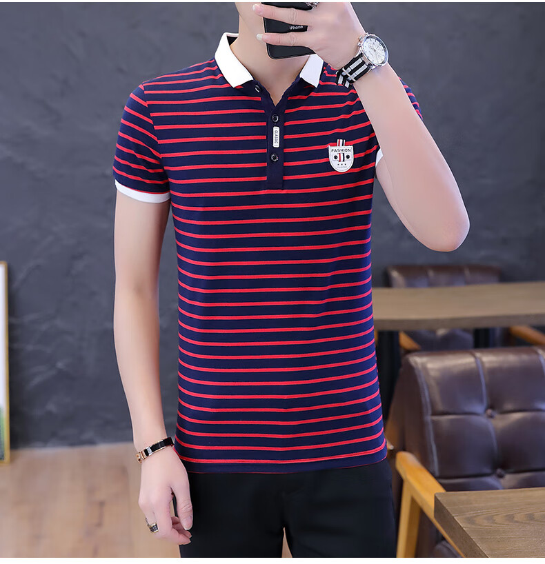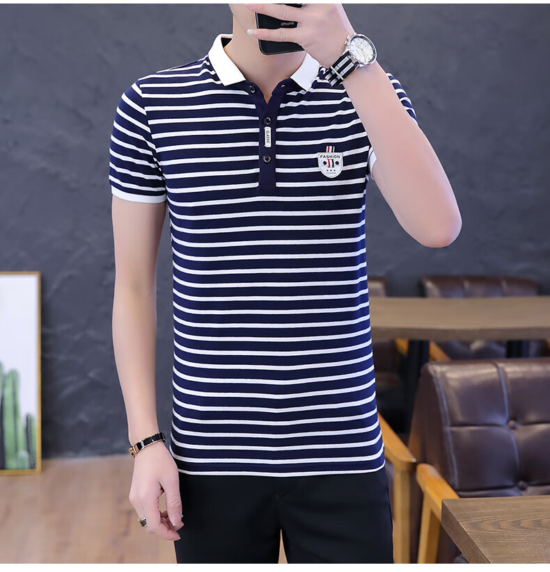 Playboy Men's Short Sleeve Simple Versatile Boys T-shirt Lapel Polo Shirt Trendy Korean Men's Summer T-shirt Men's Clothing 7029 Navy Blue XL